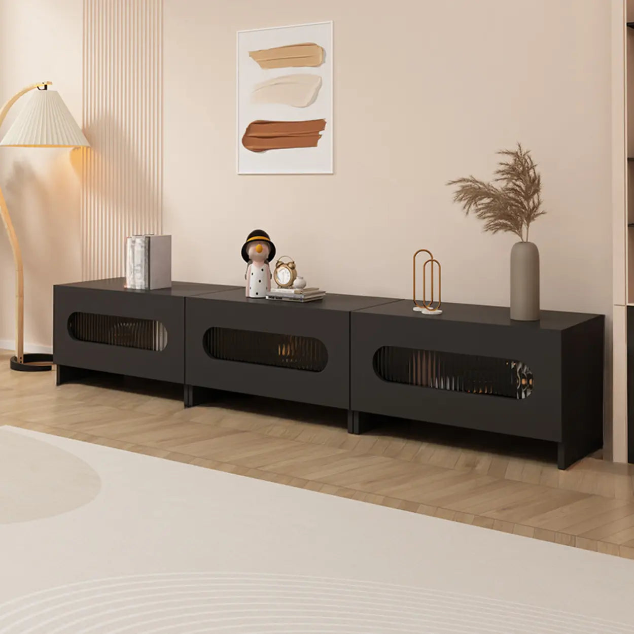 This modern TV stand is designed with premium-quality wood, and its classic black design complements any home decor. It is not only an ideal stand for your TV but also a stylish highlight for your interior decor. The TV stand is available in a selection of sizes, from a compact 24-inch to a gorgeous 118-inch, to meet the needs of different interior layouts.