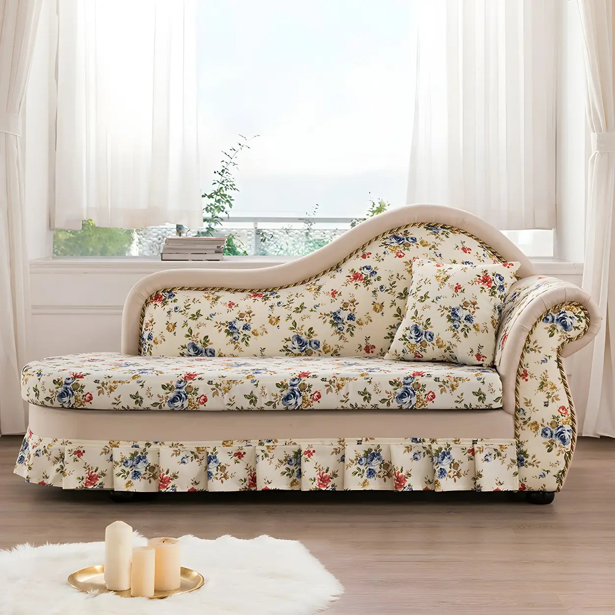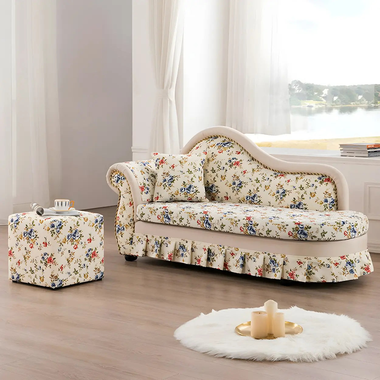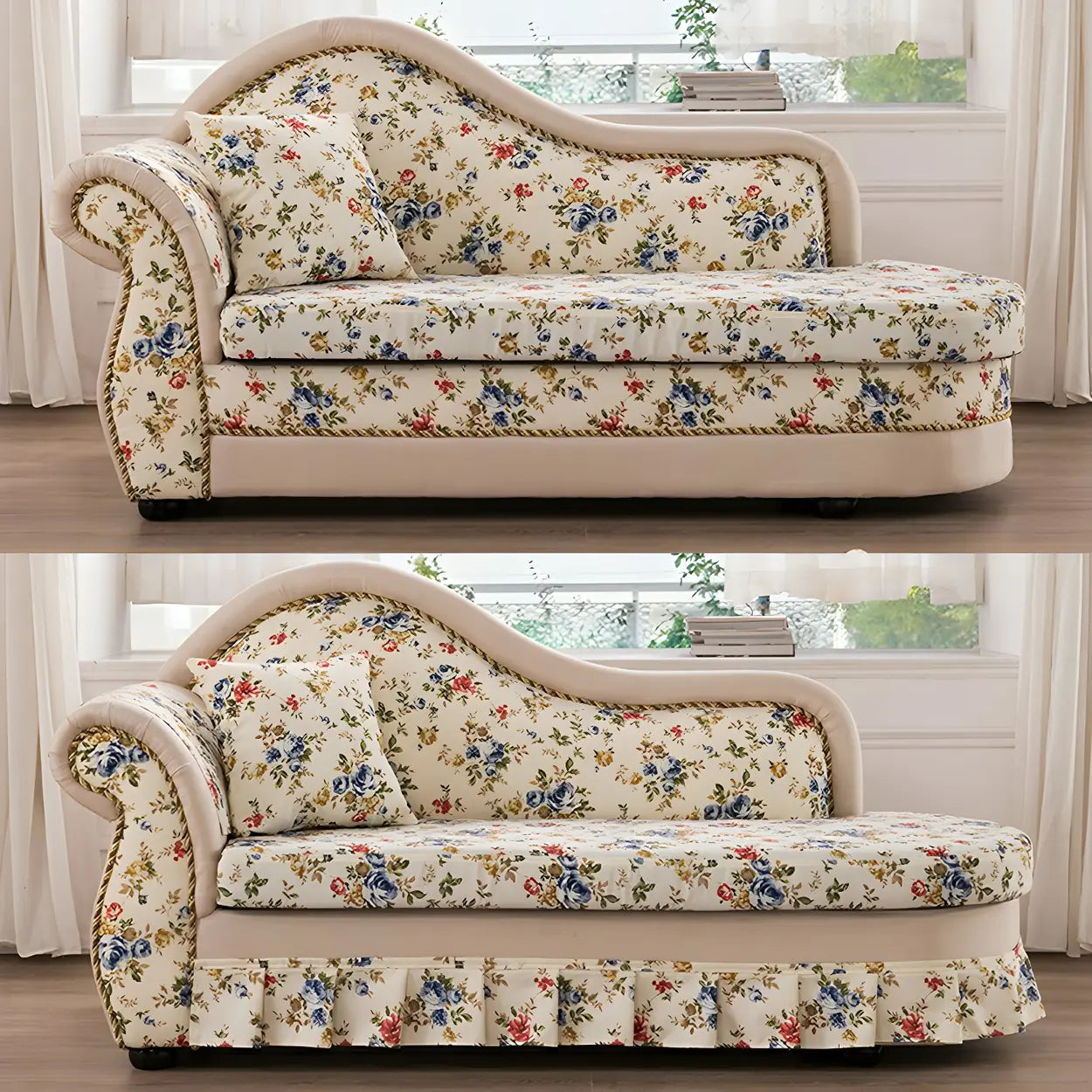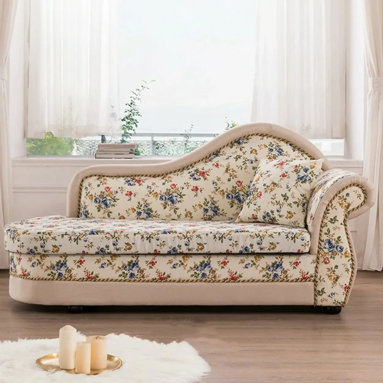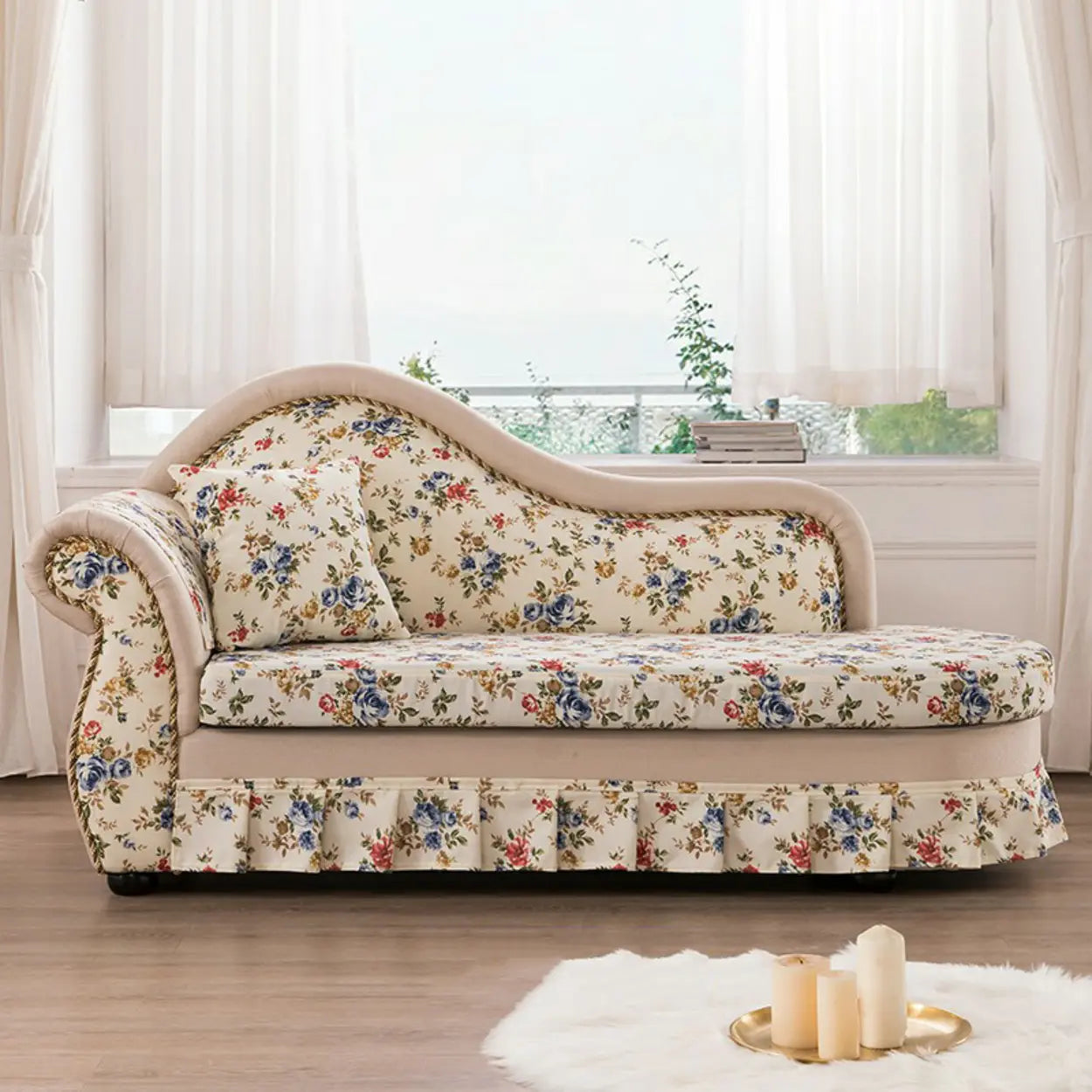 Floral Curved Fabric Solid Color Chaise Sofa Lounge
