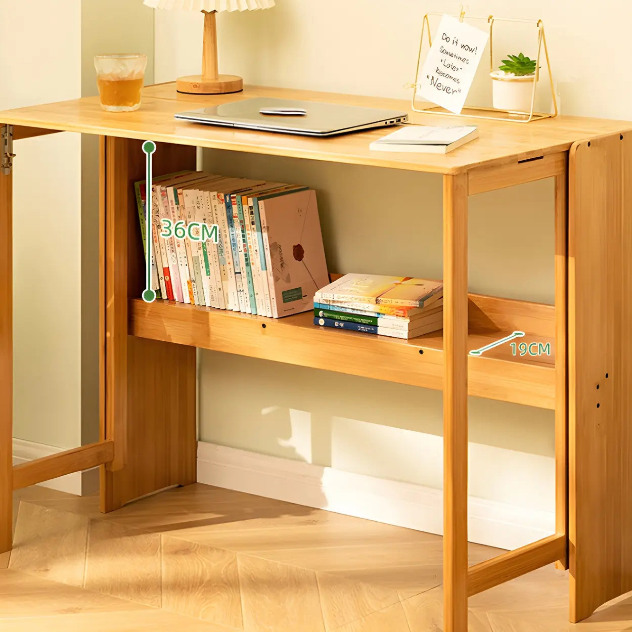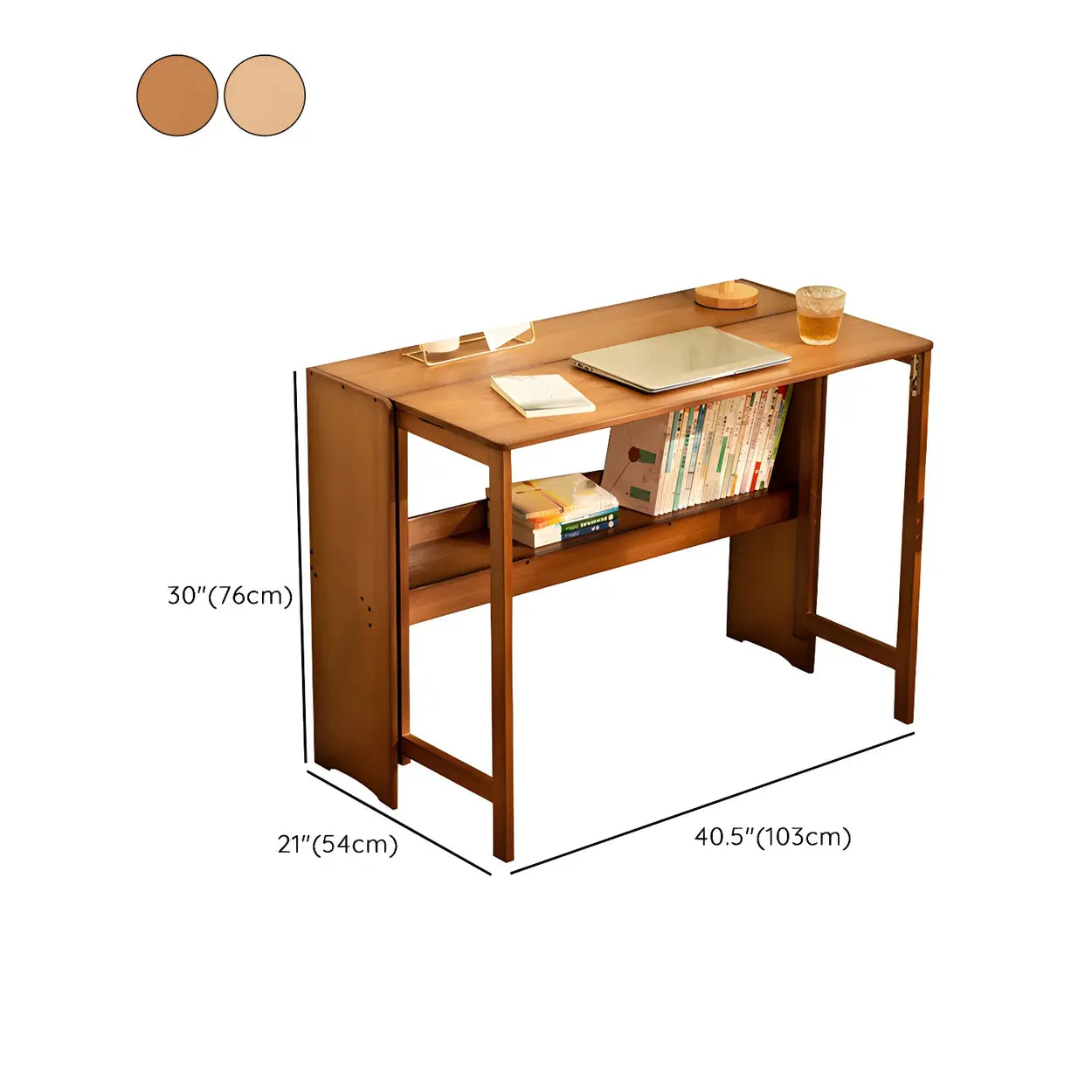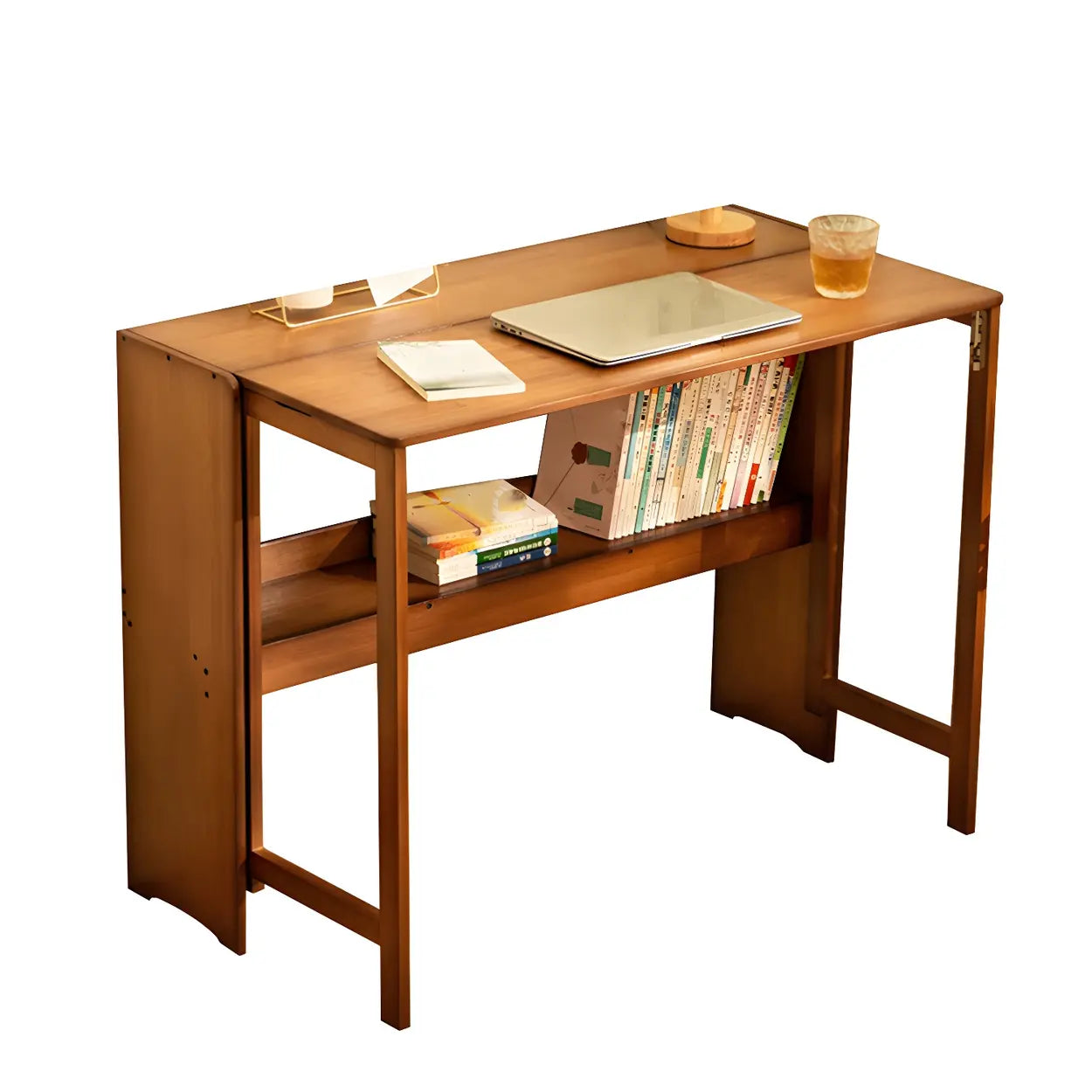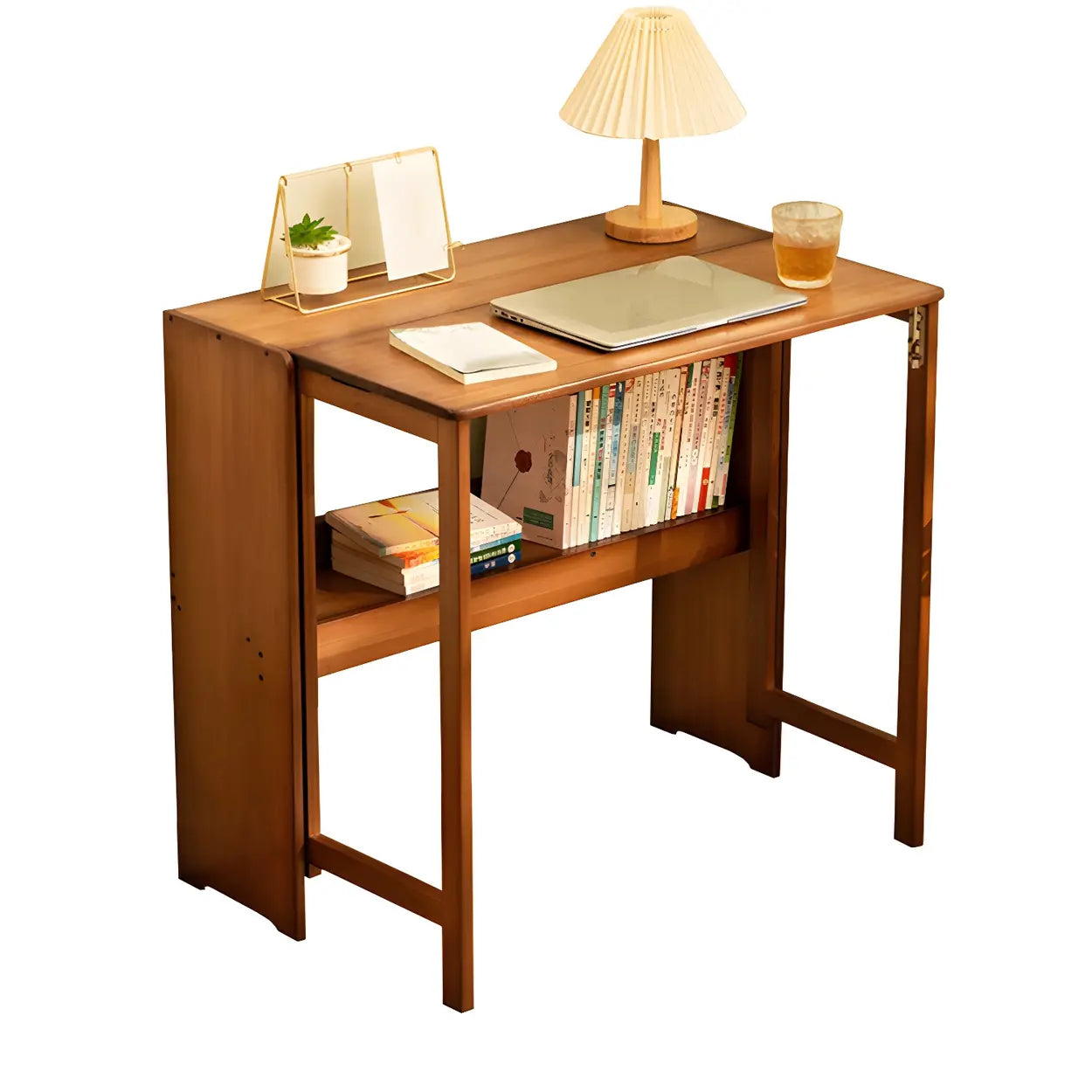 Foldable Wood H-Shape Base Exterior Shelf Writing Desk