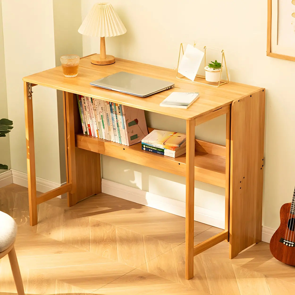 Foldable Wood H-Shape Base Exterior Shelf Writing Desk - 33"L x 21"W x 30"H / Natural Finish / Table Only is backordered and will ship as soon as it is back in stock.