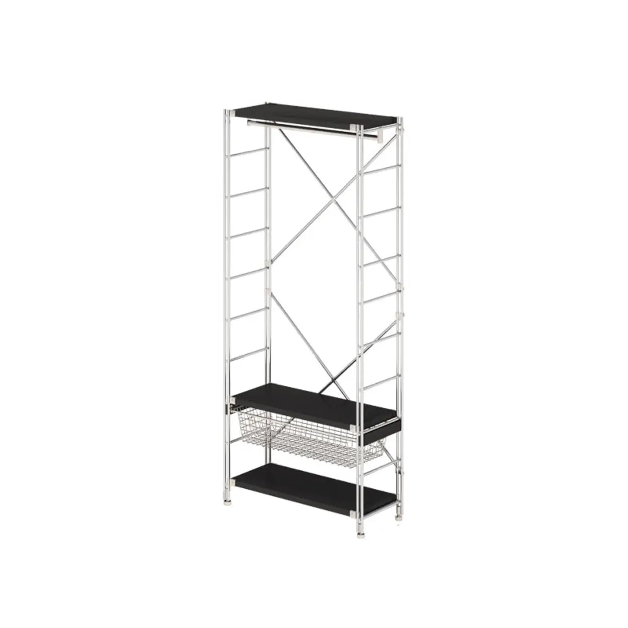 Freestanding Stainless Steel Open Storage Basket Hall Rack - 24"L x 16"W x 81"H / Black is backordered and will ship as soon as it is back in stock.