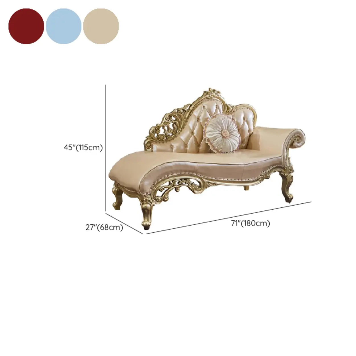Bringing unparalleled elegance to your home, this luxuriously styled champagne chaise stands out as a statement piece. Combining finely crafted gold trims with comfortable genuine leather upholstery, this chaise becomes a classic in your home.