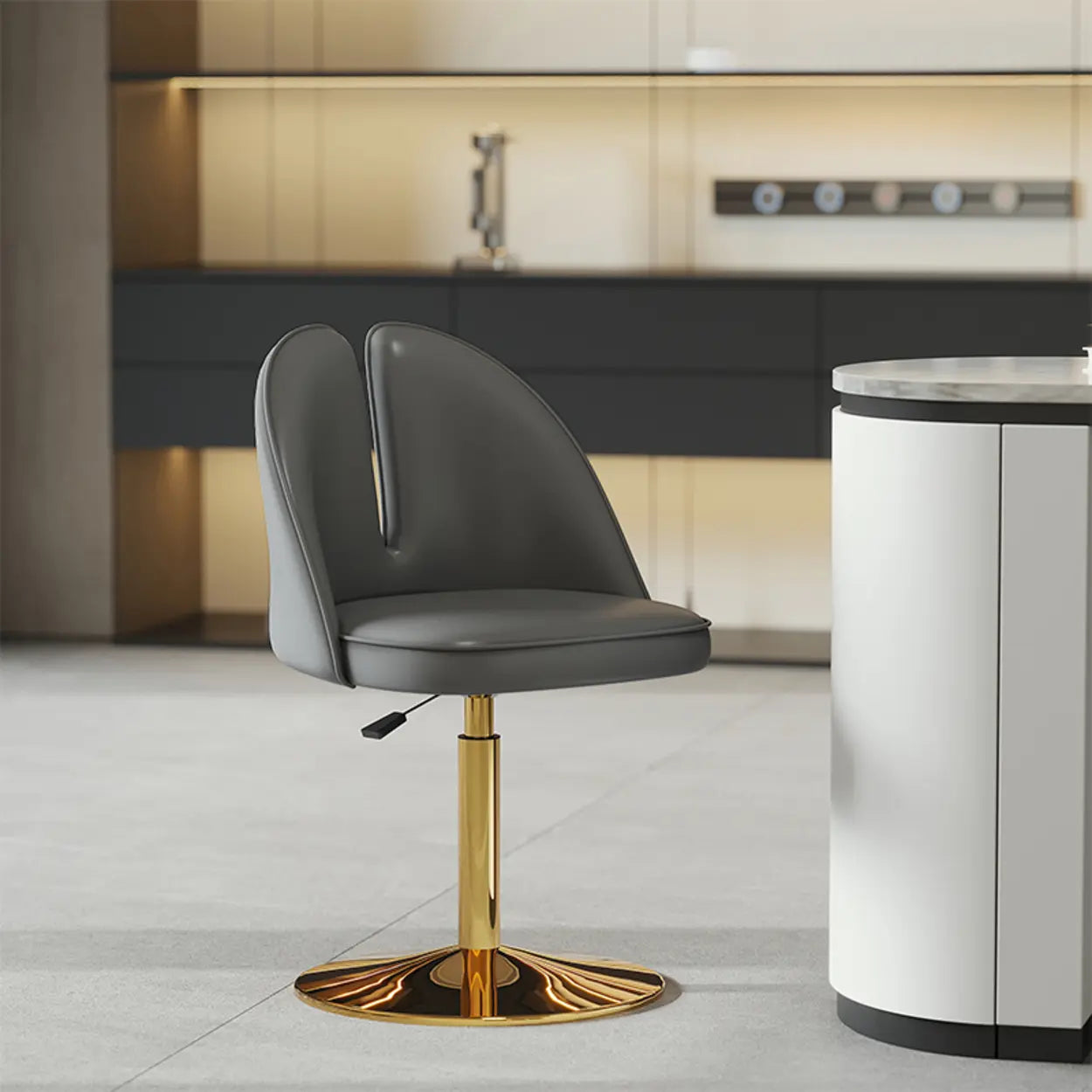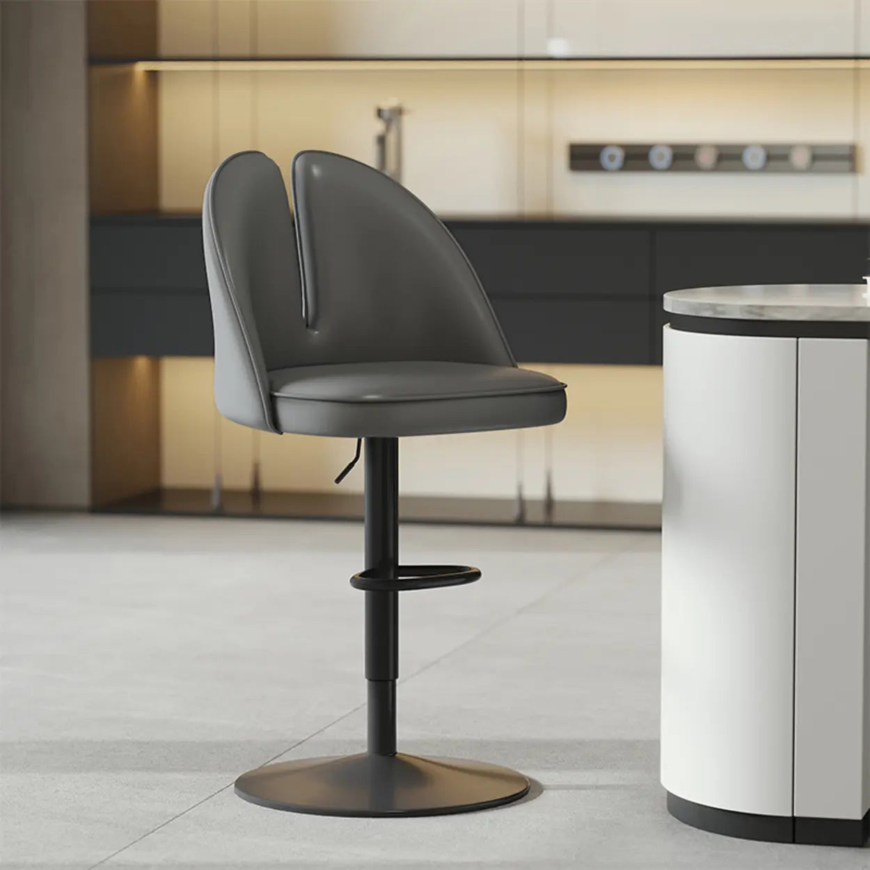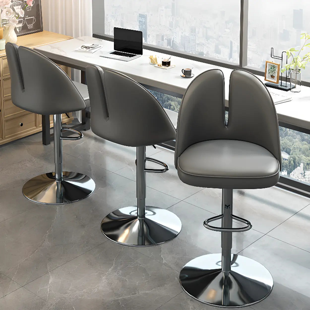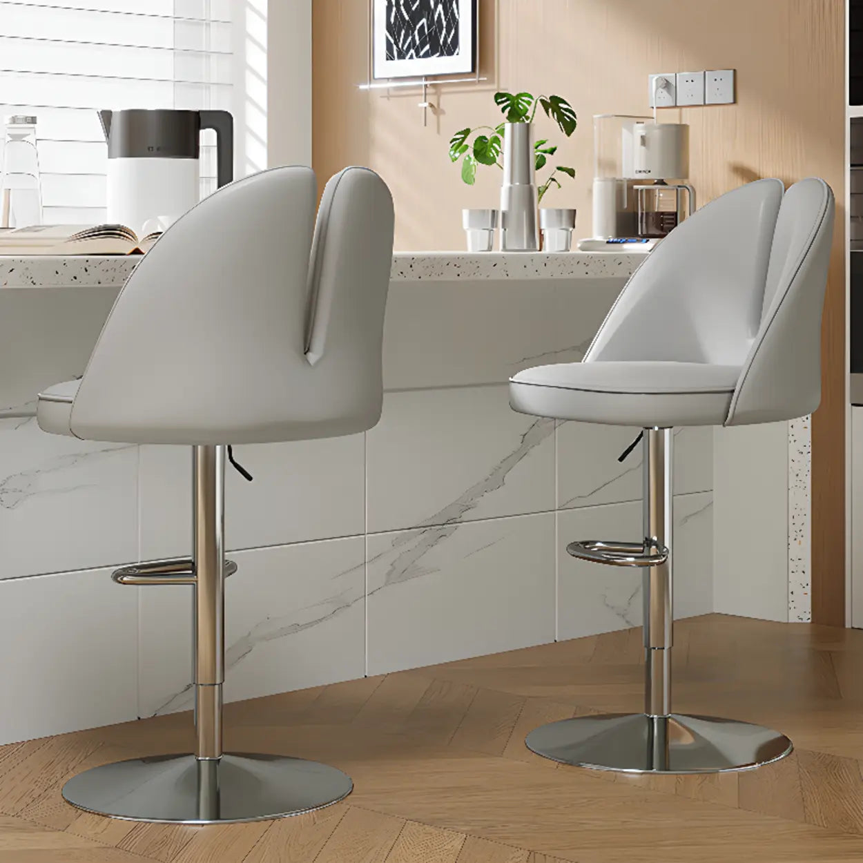 Glam Gray Swivel Adjustable Leather Footrest Back Bar Stool