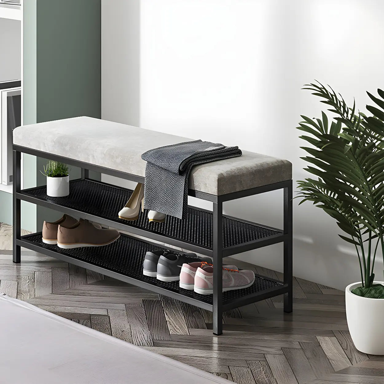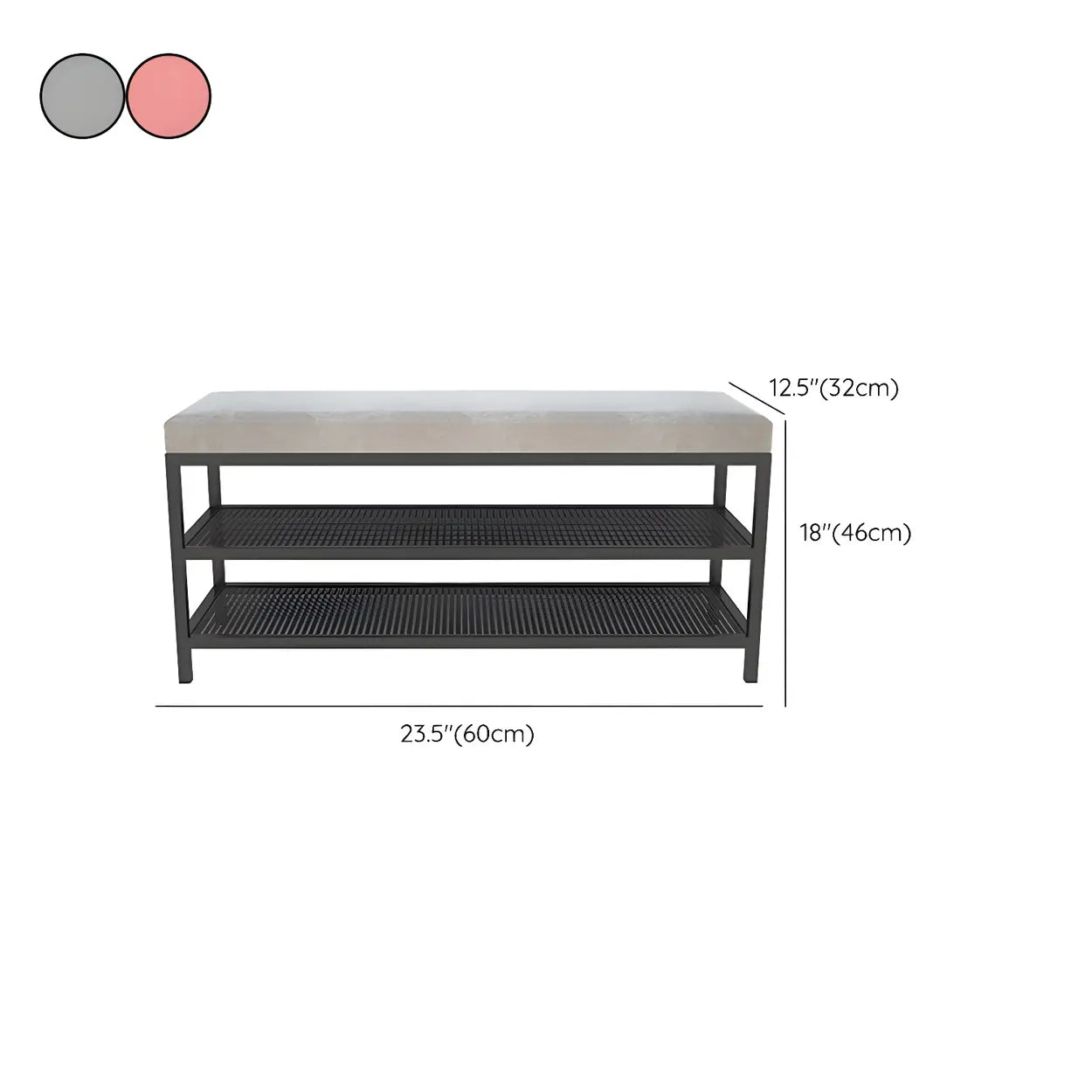 Glam Grey Upholstered Metal Shoe Storage Entryway Bench
