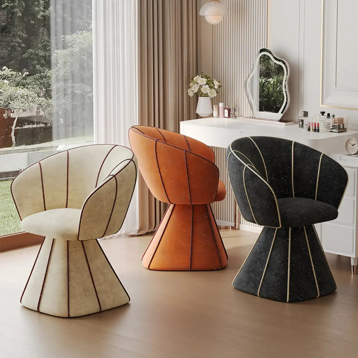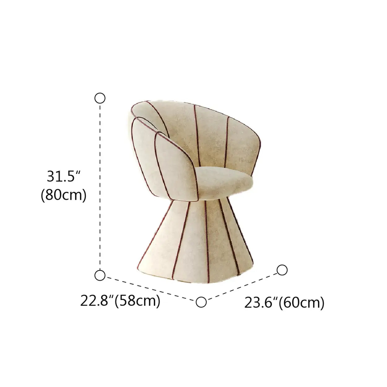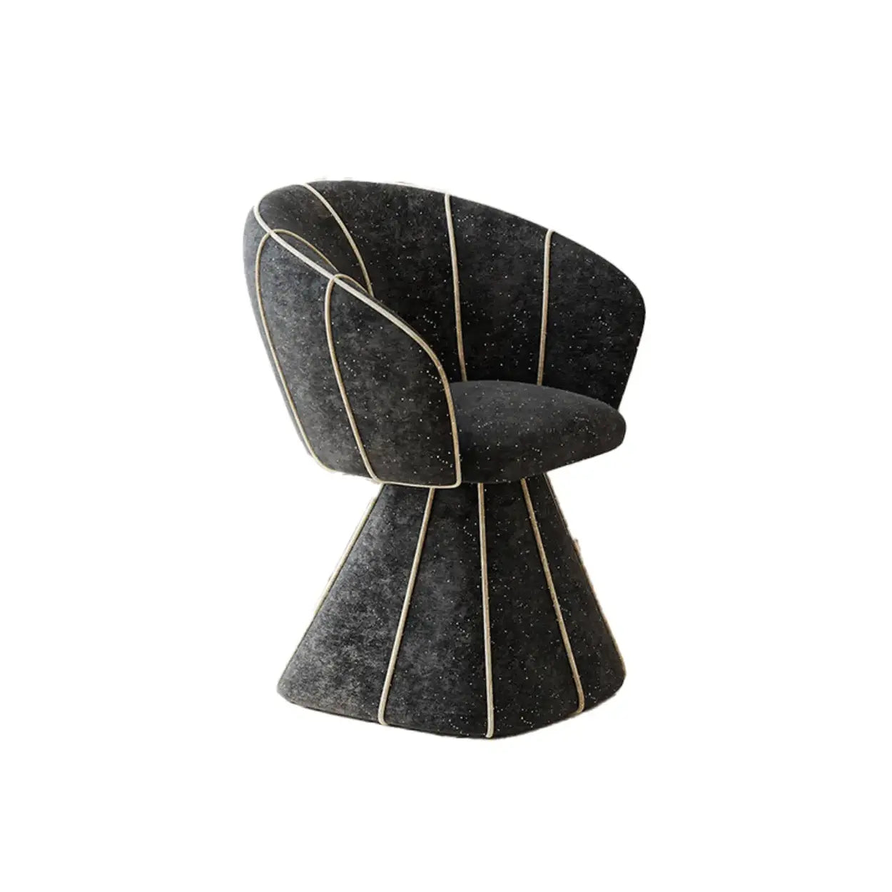 The chair features a bold, fully upholstered base that creates a glam look from top to bottom. This geometric design, highlighted by contrasting vertical lines, adds an artistic modern touch to your room.
