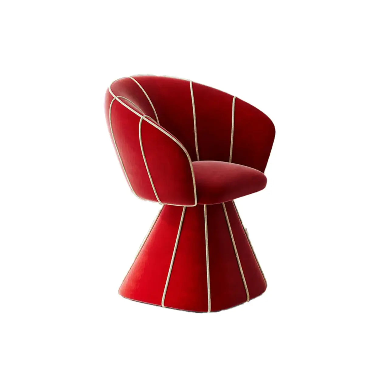 Elevate your space with this chic barrel chair, featuring a unique conical base and vertical piping details. Upholstered in soft Sherpa fabric, it adds a cozy atmosphere to living rooms or restaurants.