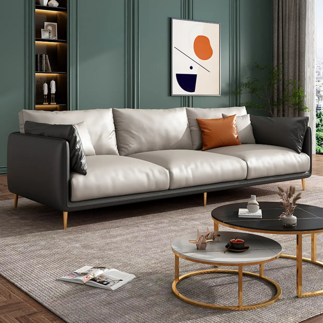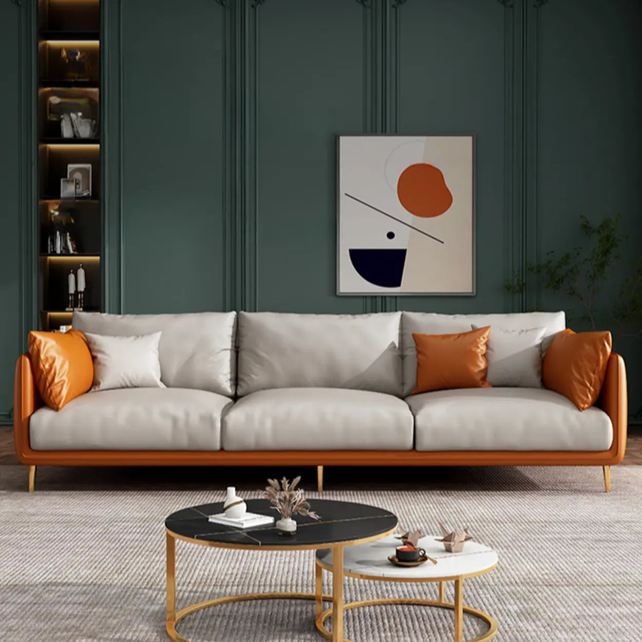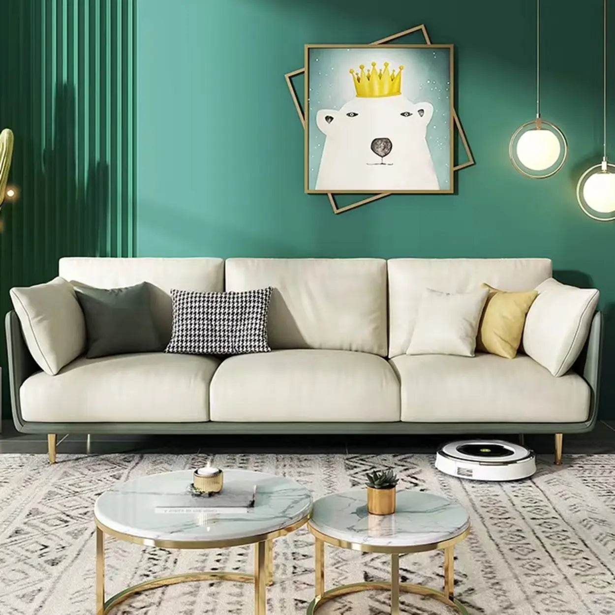 This modern rectangular fabric sofa, in an elegant beige hue, will add a touch of luxury to your interior home. The sofa design is simple and stylish, combining comfort and durability. The unique three-seater design makes it ideal for family gatherings and entertaining guests.