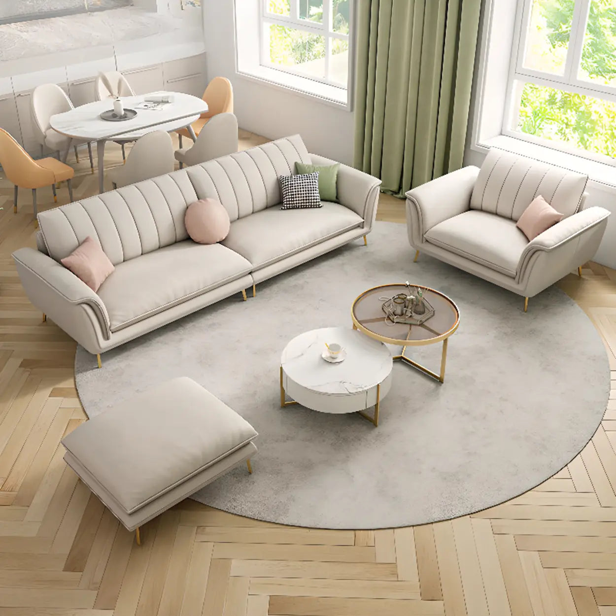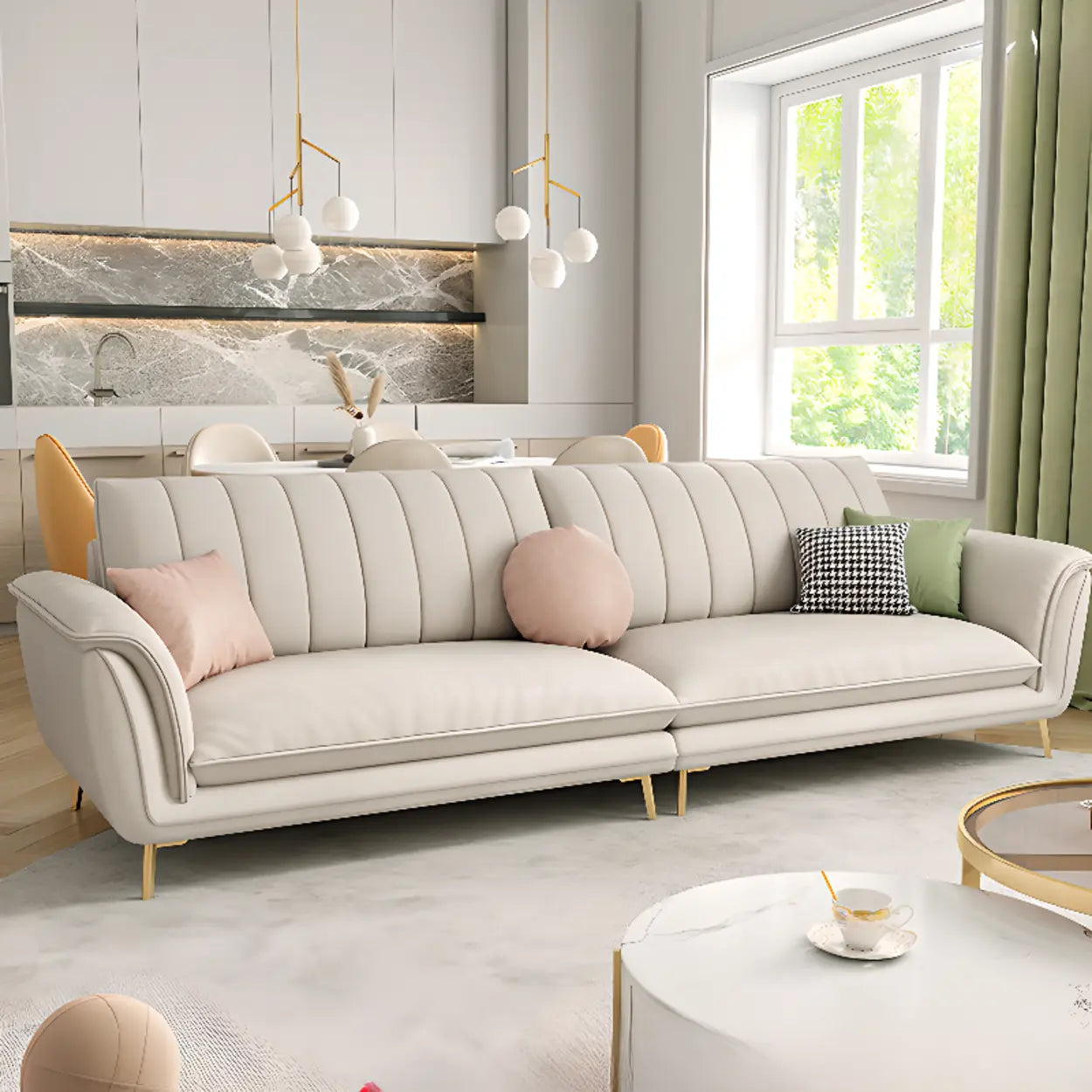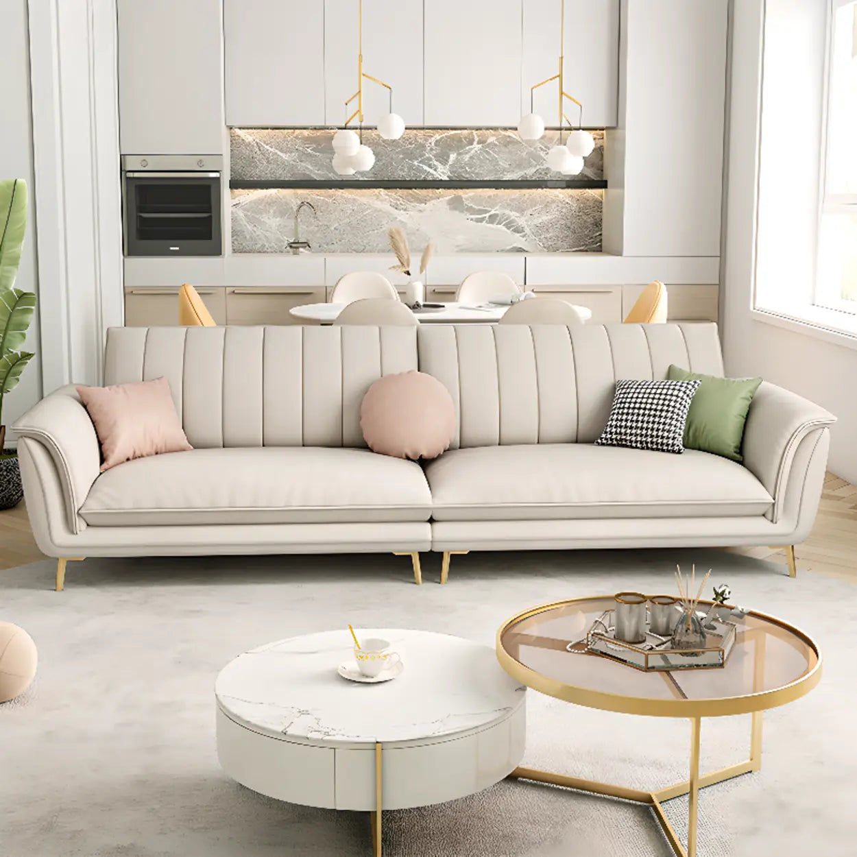This modern off-white sofa is the perfect blend of style and practicality for your home. The high-grade material boosts the overall luxury and is simple to clean, making your home life more convenient. This sofa has an elegant design, flip-out armrests, and a comfortable backrest, furnishing you with unparalleled comfort.