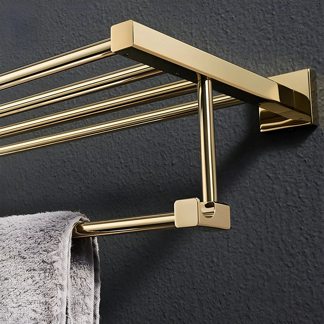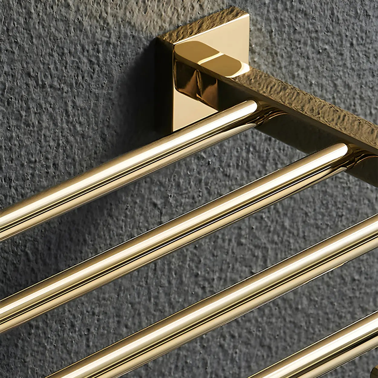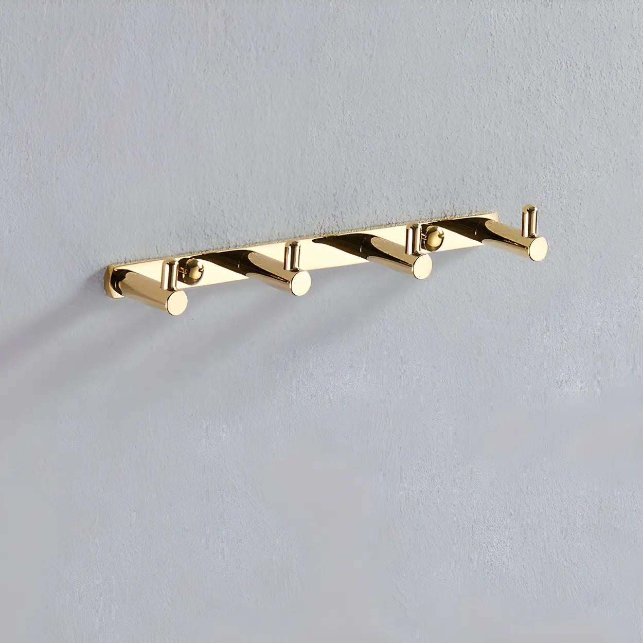This bathroom hardware set combines modern and classic design to heighten a touch of luxury to your bathroom. Its elegant gold tone elevates the interior decoration level. And the durable metal material guarantees long-term service life.
