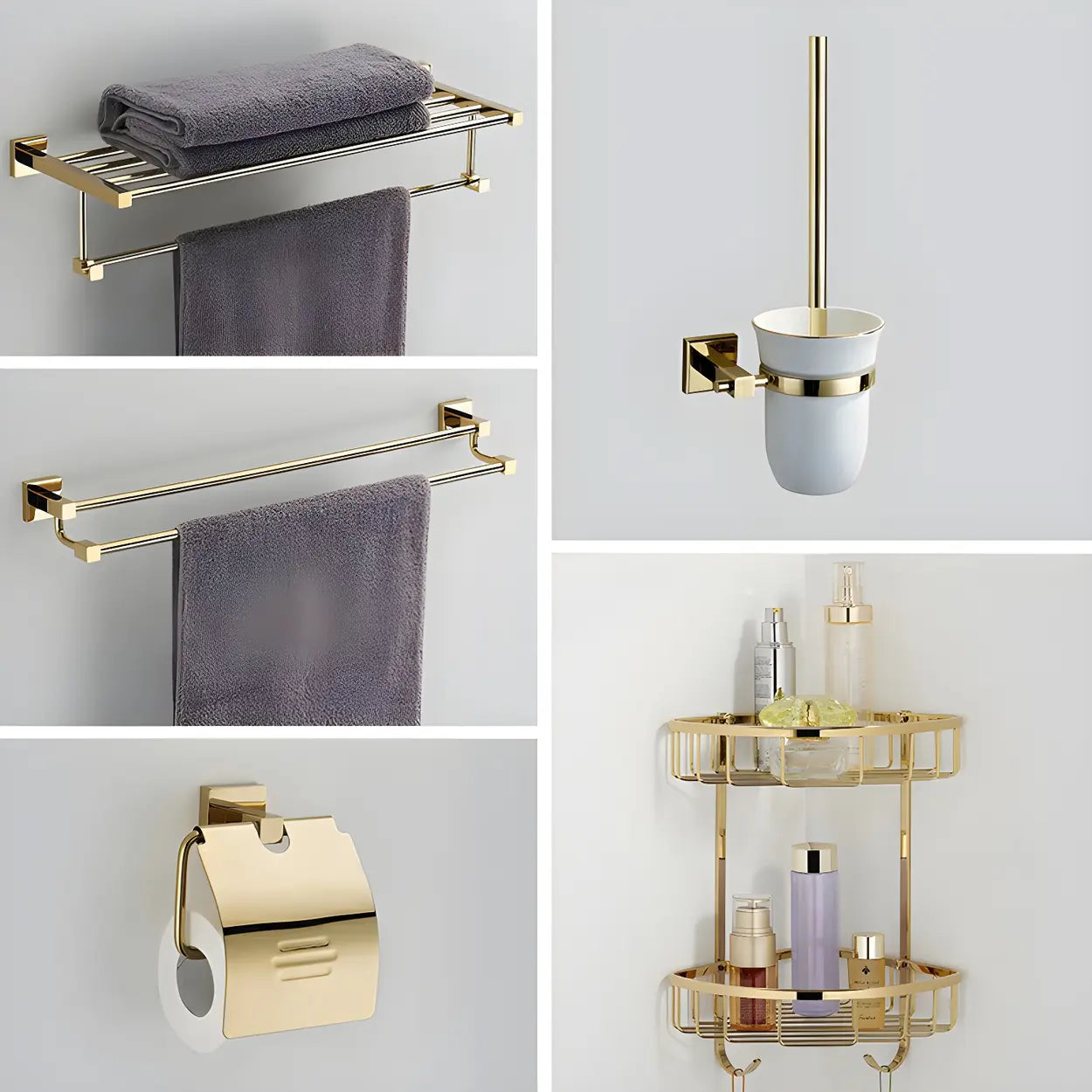 Gold Adhesive Mount Metal Storage Bathroom Hardware Set
