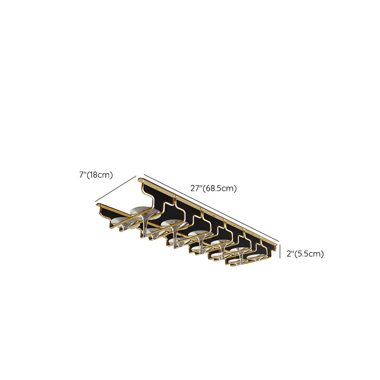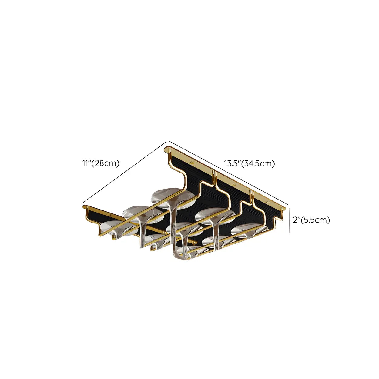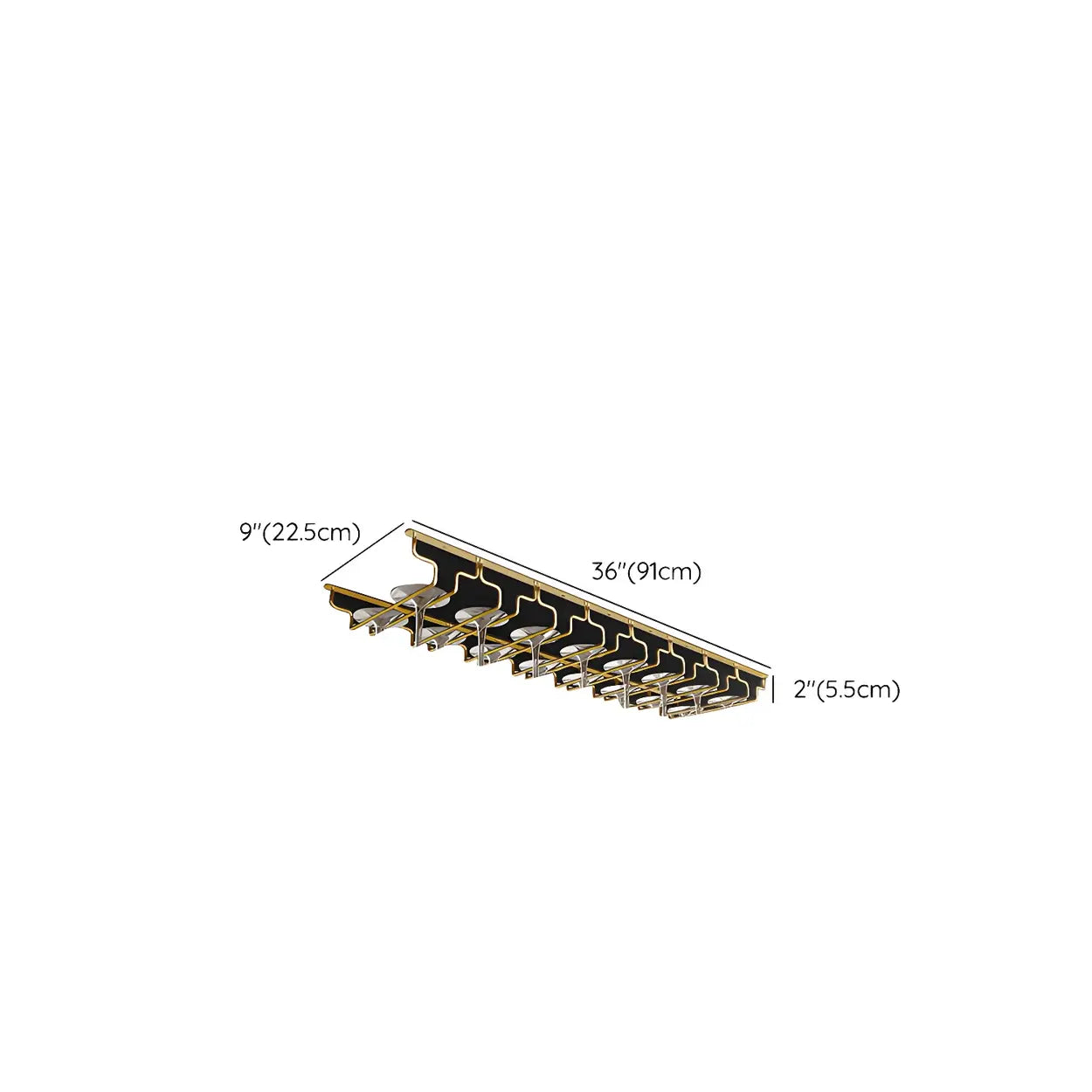 Gold Geometric Metal 36 Inch Wine Glass Holder Rack - 14"L x 7"W x 2"H is backordered and will ship as soon as it is back in stock.