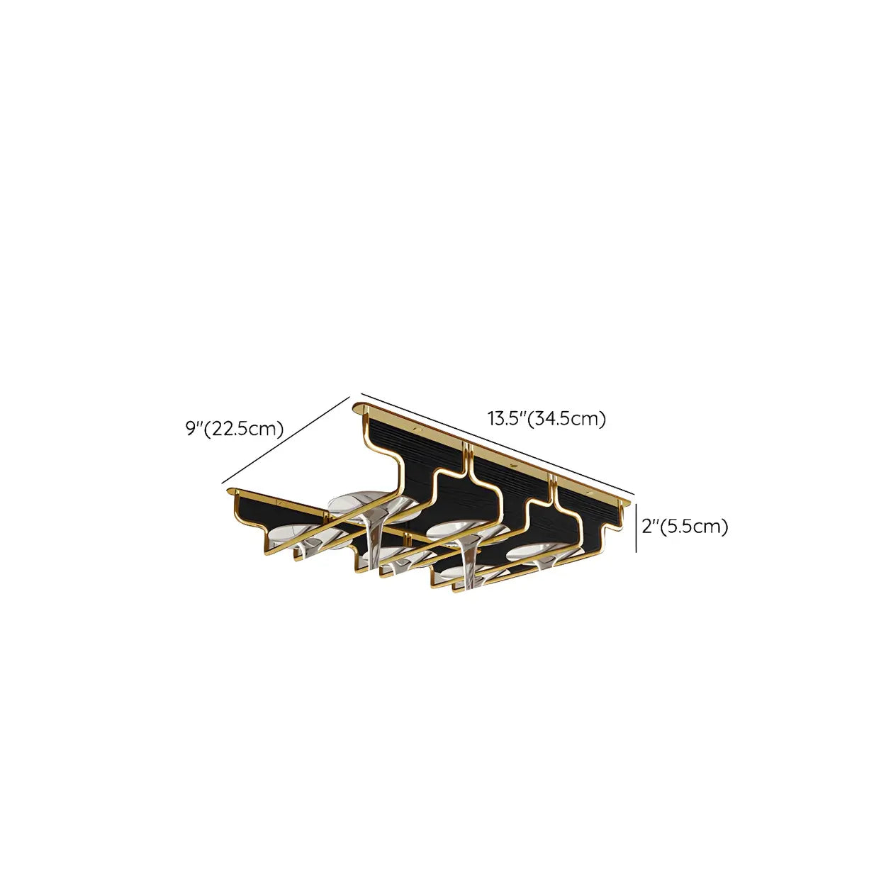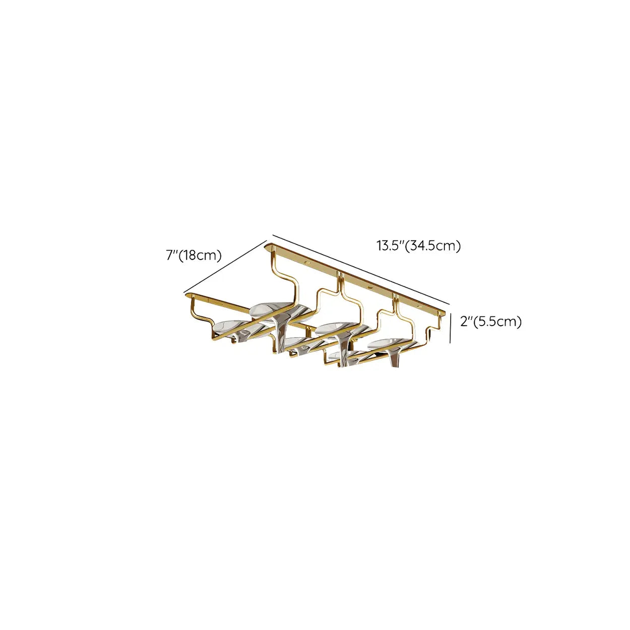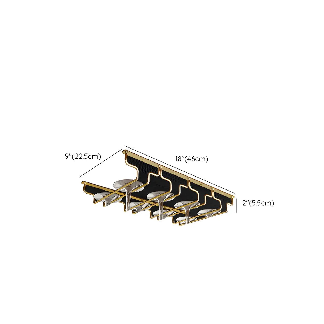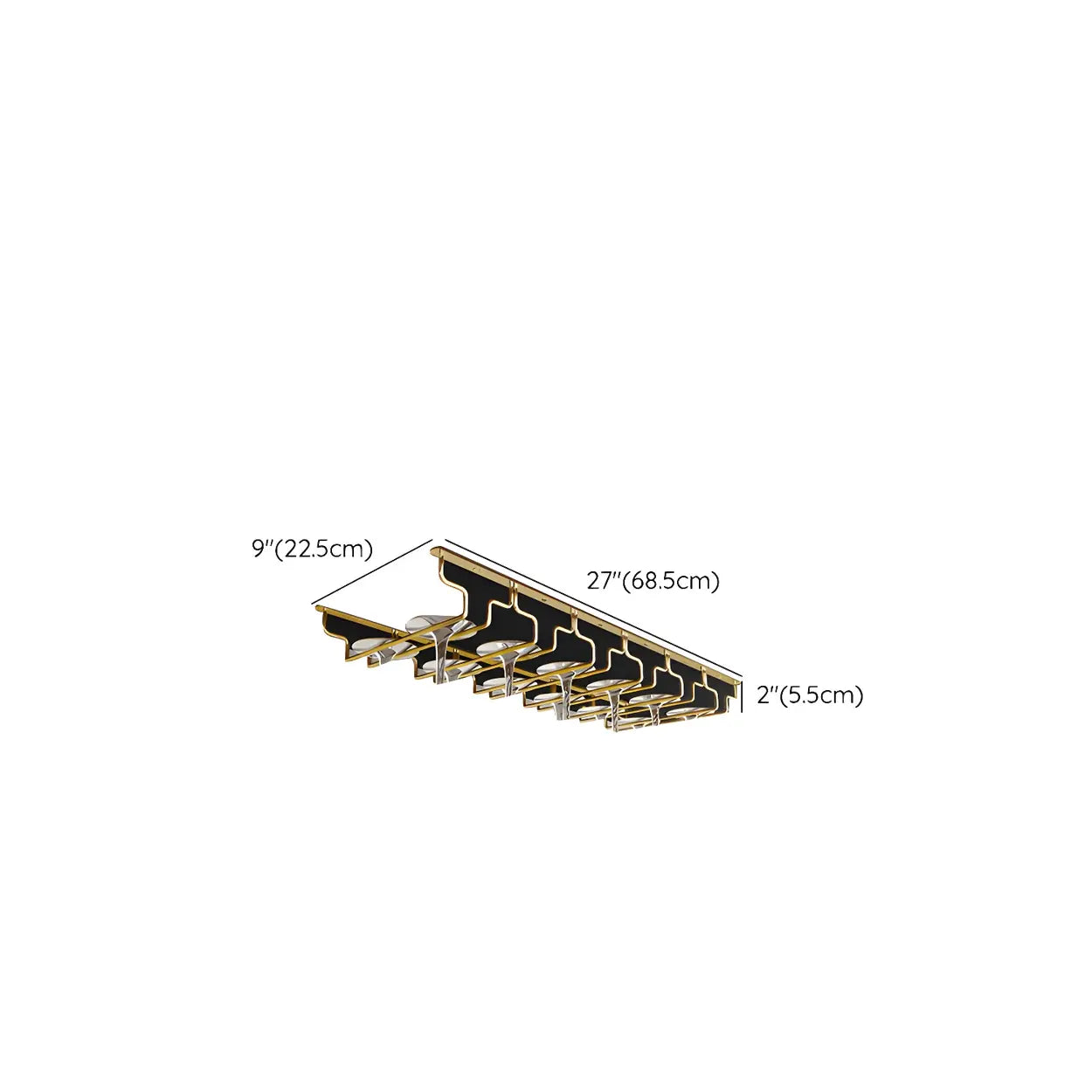 Gold Geometric Metal 36 Inch Wine Glass Holder Rack - 14"L x 7"W x 2"H is backordered and will ship as soon as it is back in stock.
