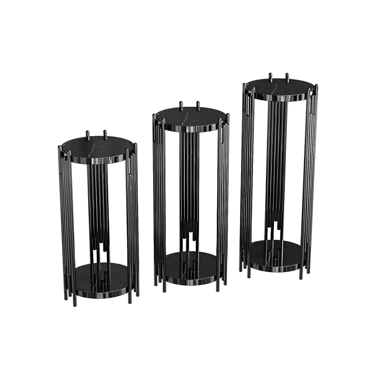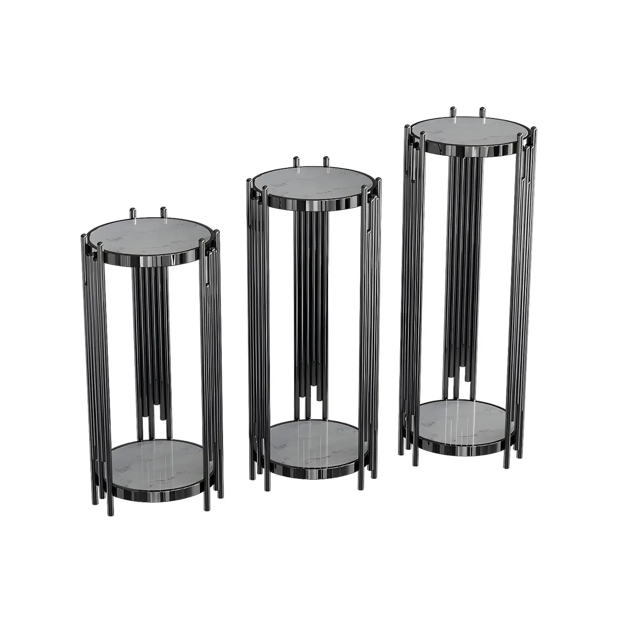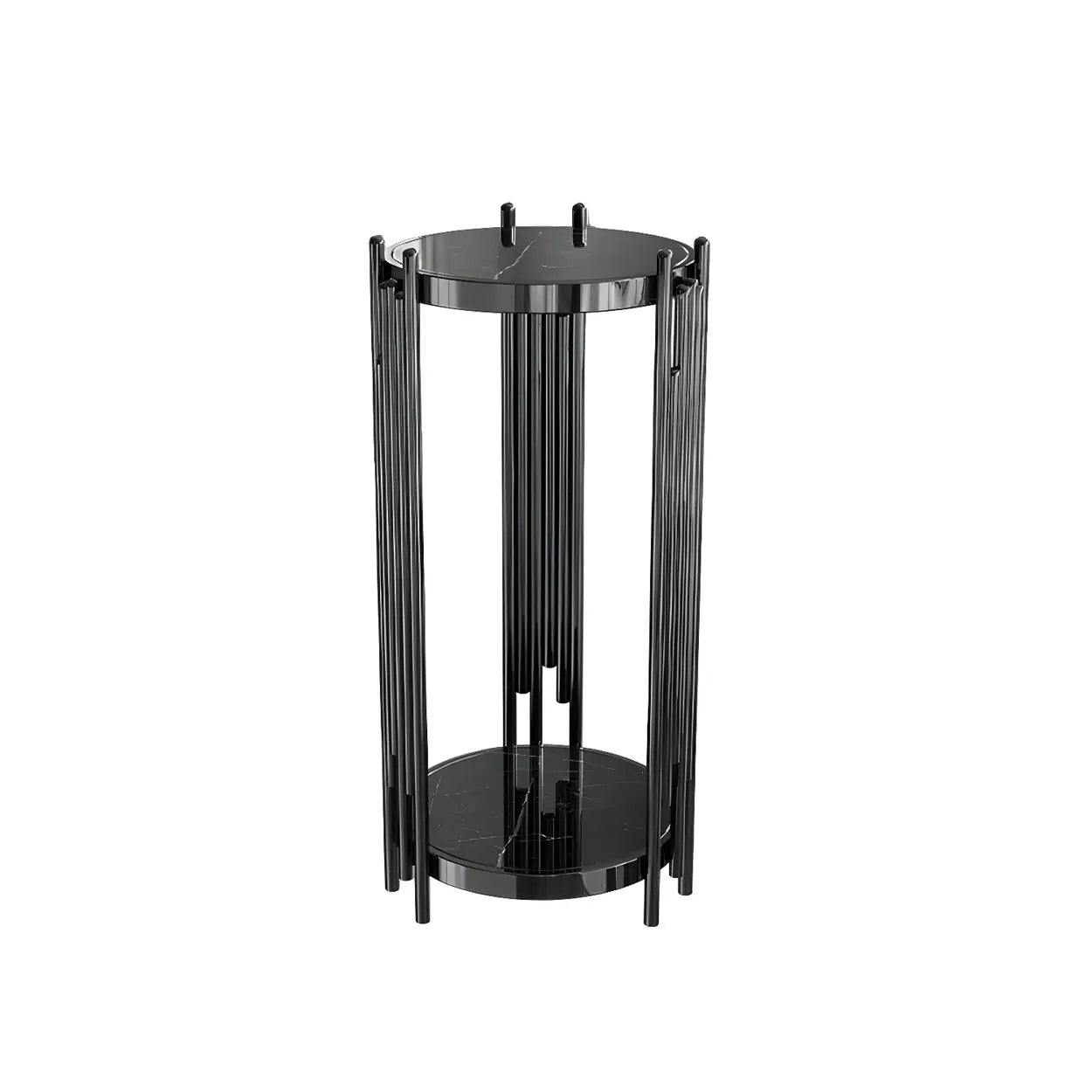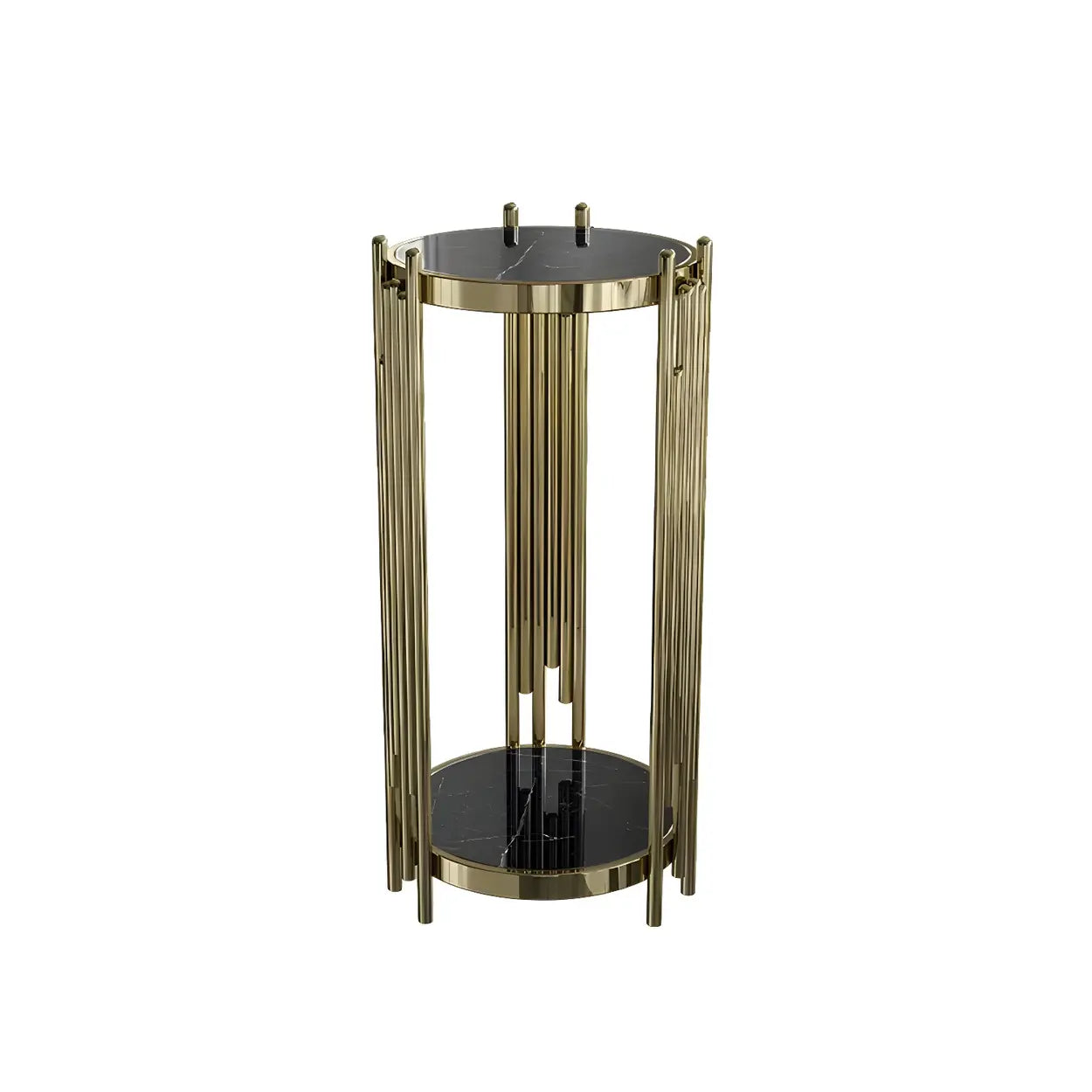Gold Metal Legs Round Marble Top Shelves Plant Stand - Black / 13"L x 13"W x 28"H / 1 Piece is backordered and will ship as soon as it is back in stock.