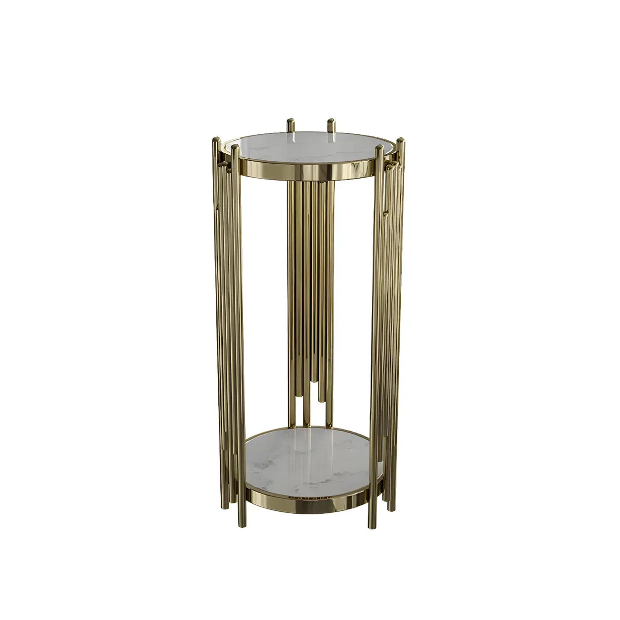 Gold Metal Legs Round Marble Top Shelves Plant Stand