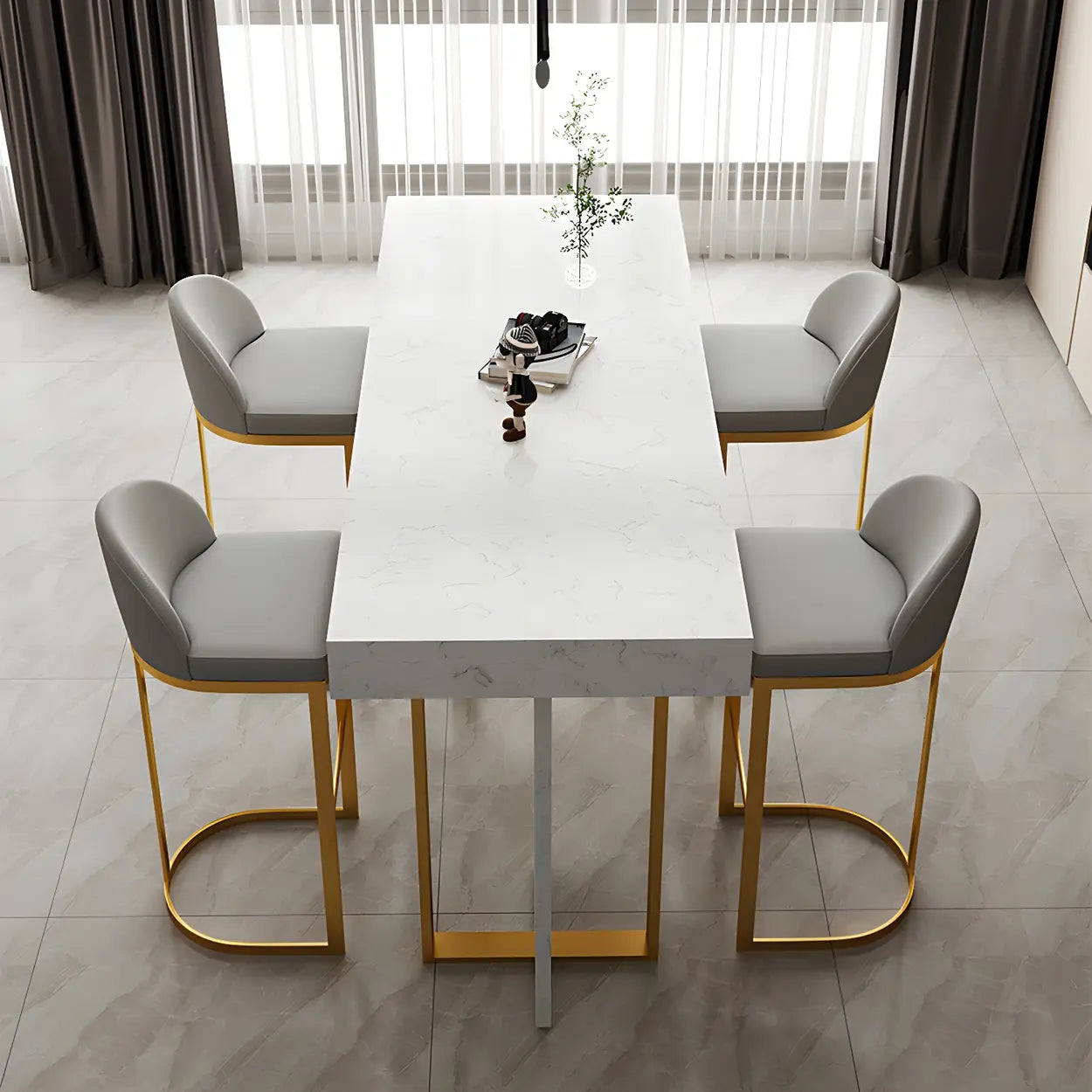 Gold Rectangle White Marble Top Iron Dining Bar Table