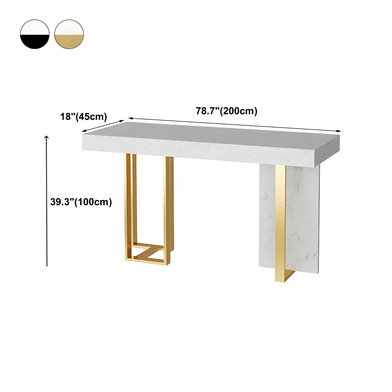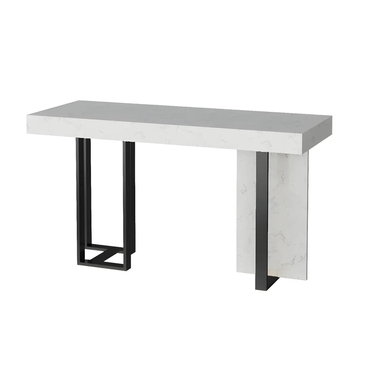 Gold Rectangle White Marble Top Iron Dining Bar Table - 47.2"L x 17.7"W x 39.3"H / Black / Table Only is backordered and will ship as soon as it is back in stock.