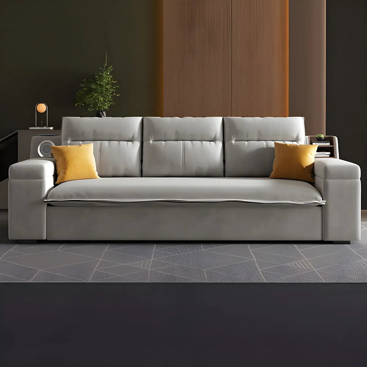 Gray Velvet Sloped Arms Wood Frame Storage Sleeper Sofa