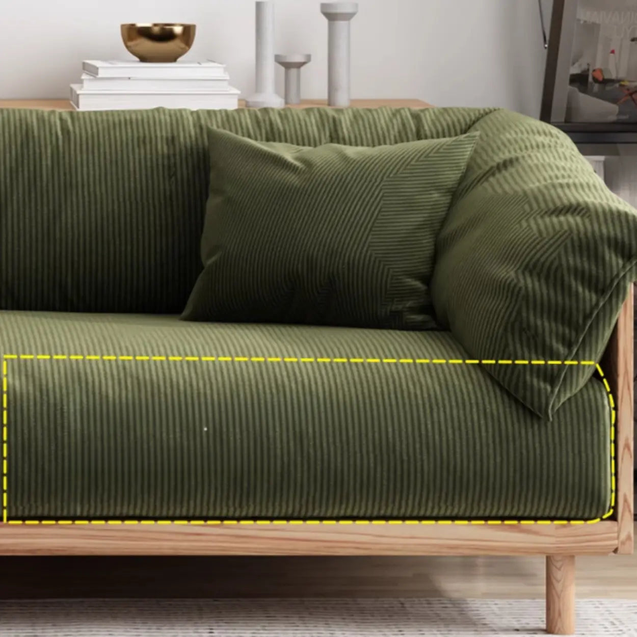 This classic sofa features an elegant green design, perfectly combining fashion and practicality. The superior-quality ash wood structure and removable cushions upgrade the overall comfort and increase the convenience of cleaning, making your home environment more simple and elegant.