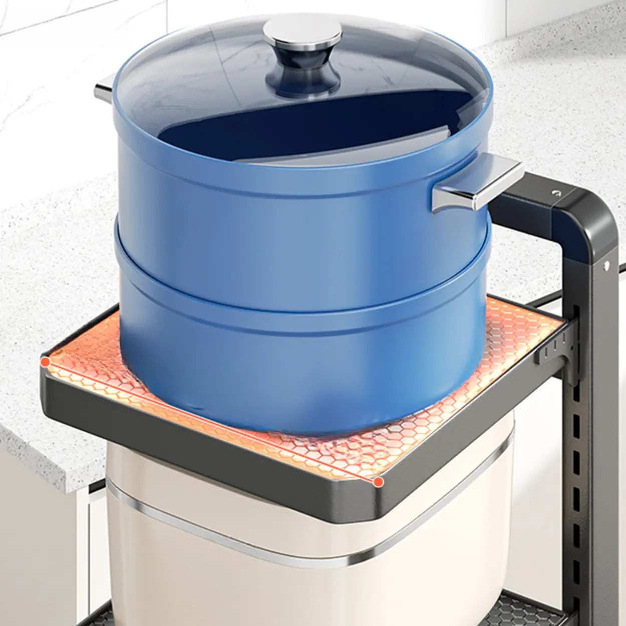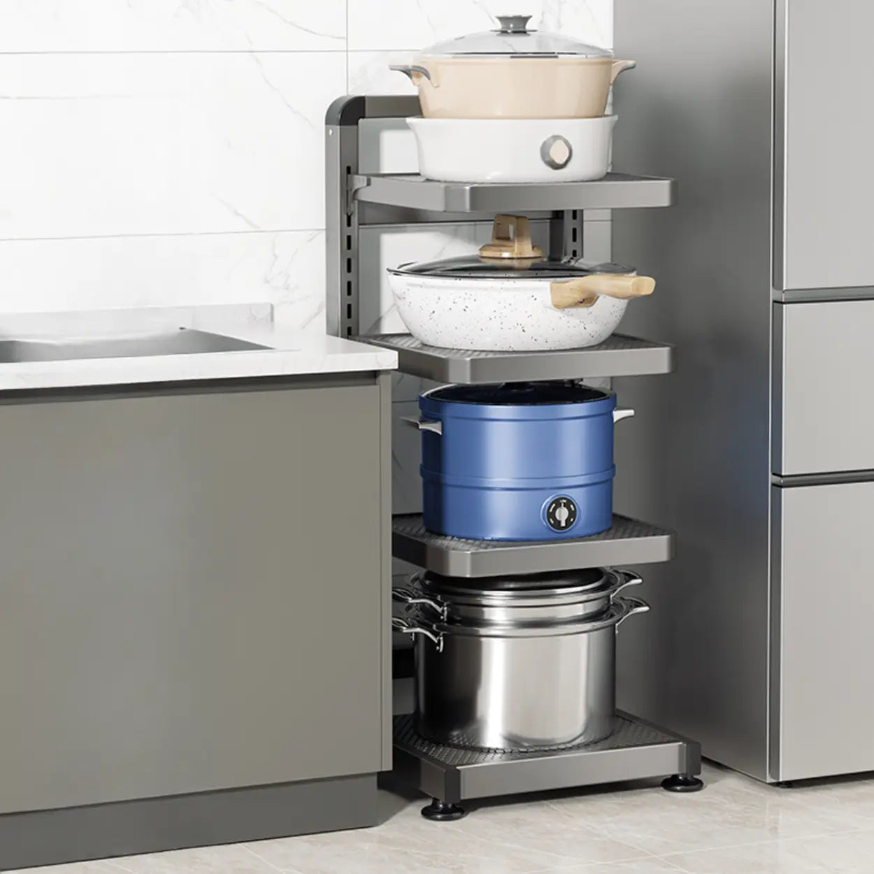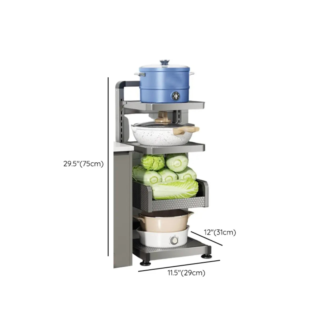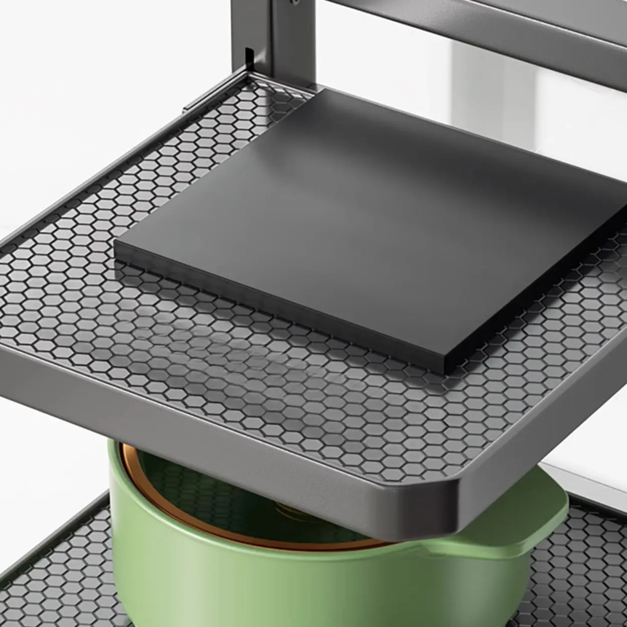 This multi-layer metal grill is the perfect choice to improve kitchen storage efficiency. The exquisite gray design and narrow and long structure can cleverly save space whether in the kitchen corner or against the wall. The enduring material ensures that it can easily carry several kitchen equipment and utensils. This grill is not only a storage unit, but also a beautiful and practical kitchen decoration.