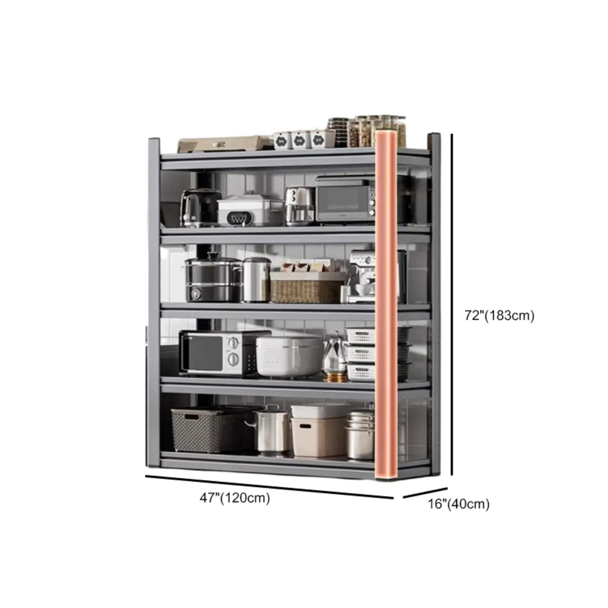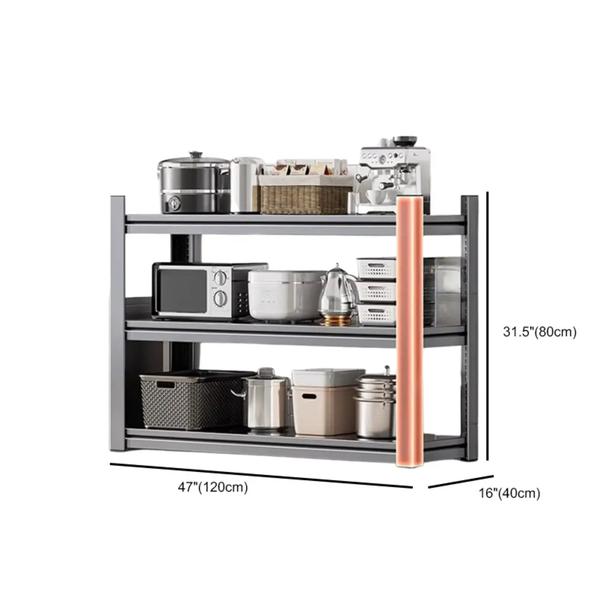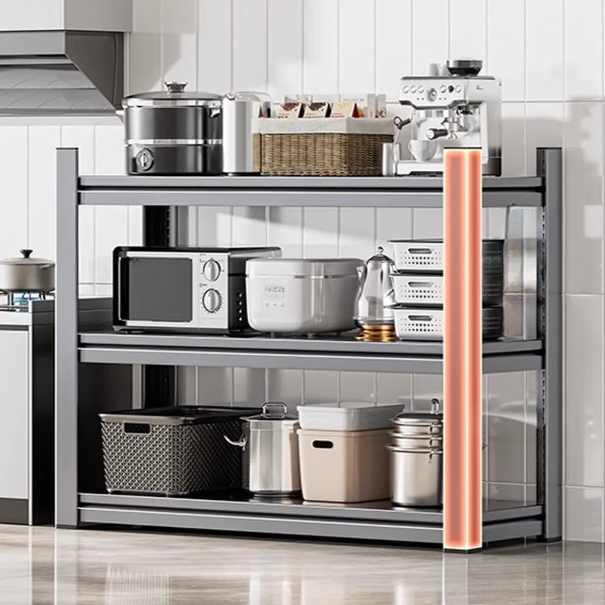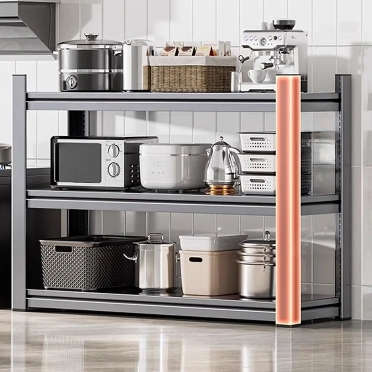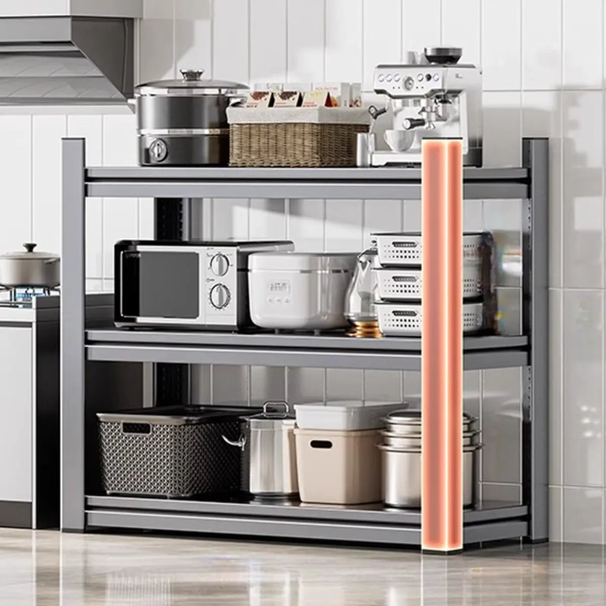 As the perfect companion for your kitchen and home, this modern and practical baker's rack presents functionality and style. Crafted from solid steel, it features better durability and weight-bearing capacity. Its spacious design presents enough storage space to keep your kitchen tools, recipes, or other items systematically. The simple gray color is appropriate for any home interior and is a practical and beautiful choice.