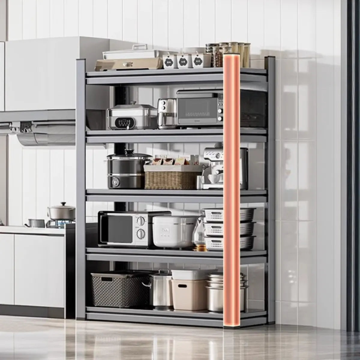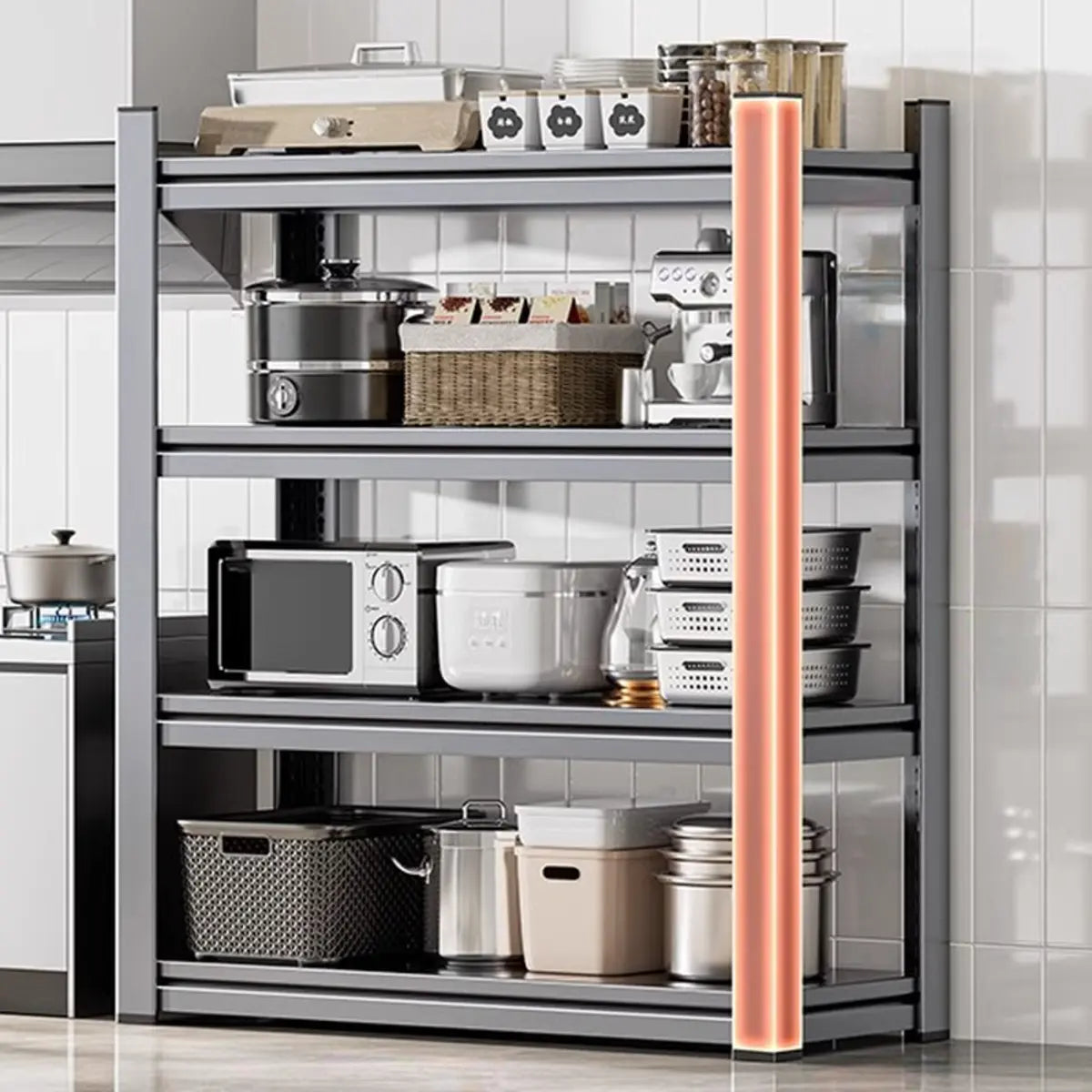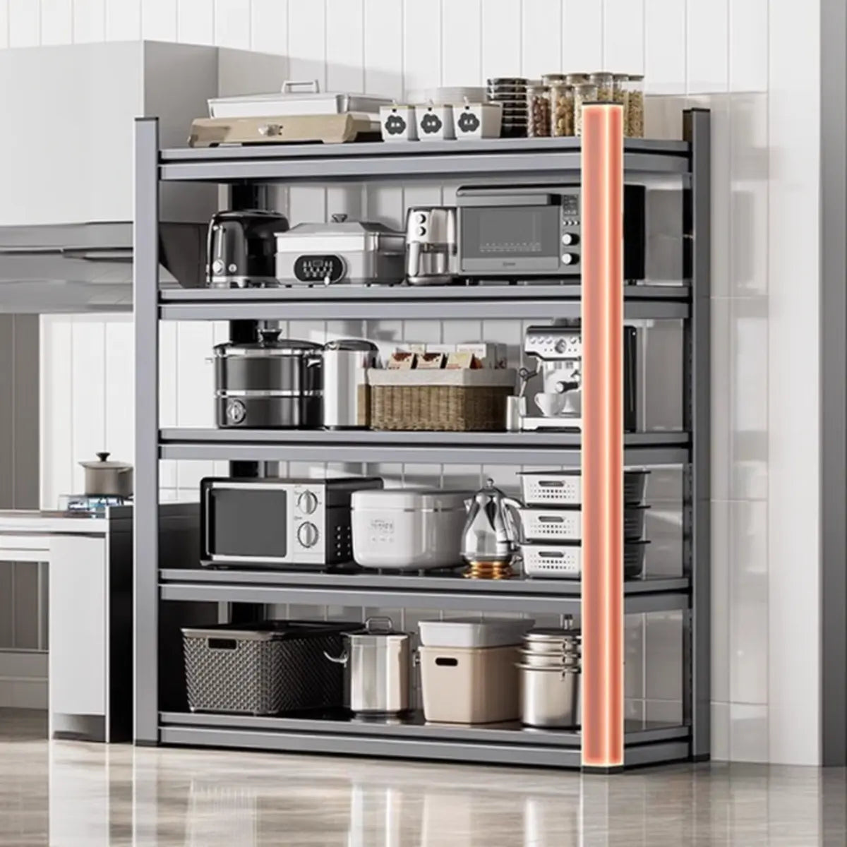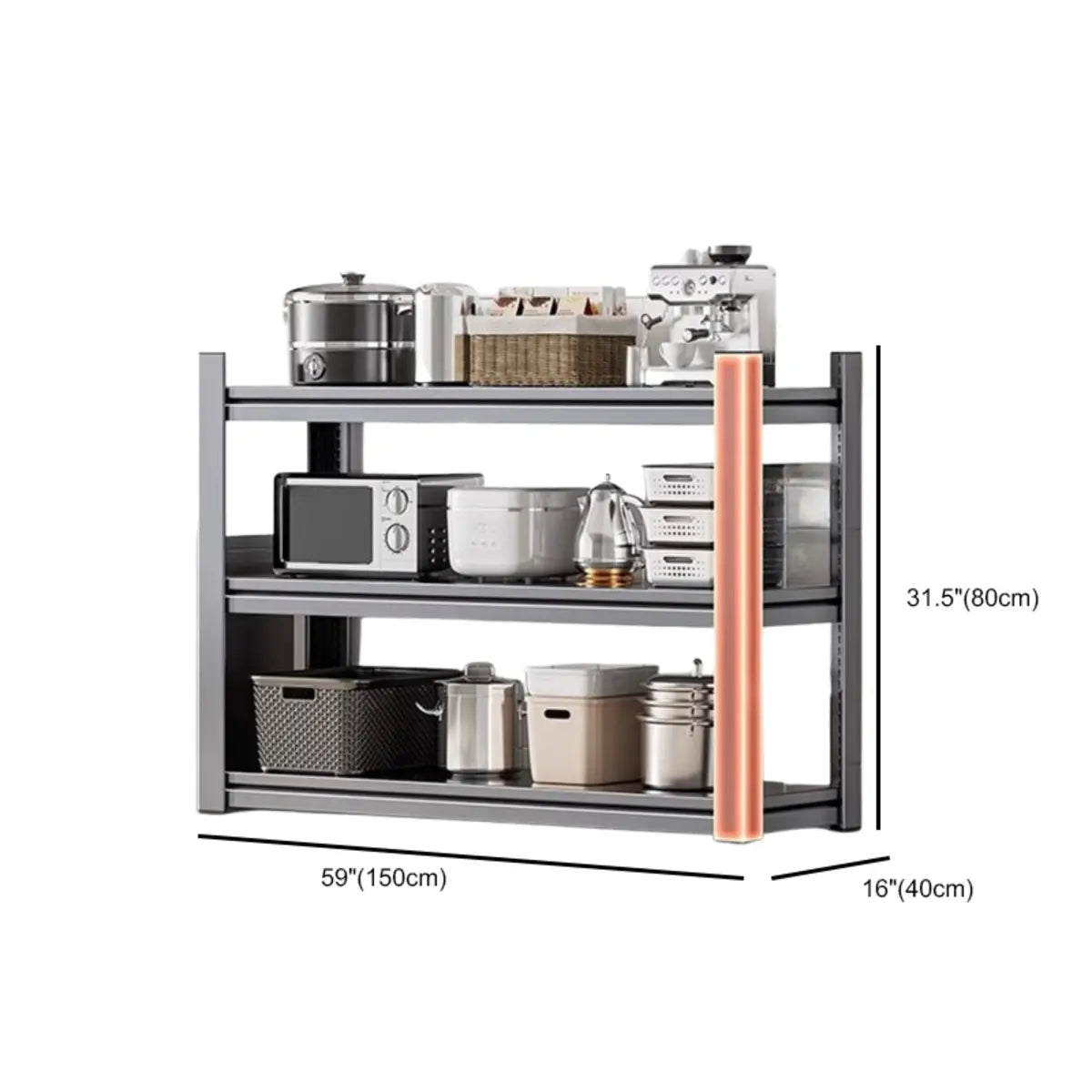 As the perfect companion for your kitchen and home, this modern and practical baker's rack presents functionality and style. Crafted from solid steel, it features better durability and weight-bearing capacity. Its spacious design presents enough storage space to keep your kitchen tools, recipes, or other items systematically. The simple gray color is appropriate for any home interior and is a practical and beautiful choice.