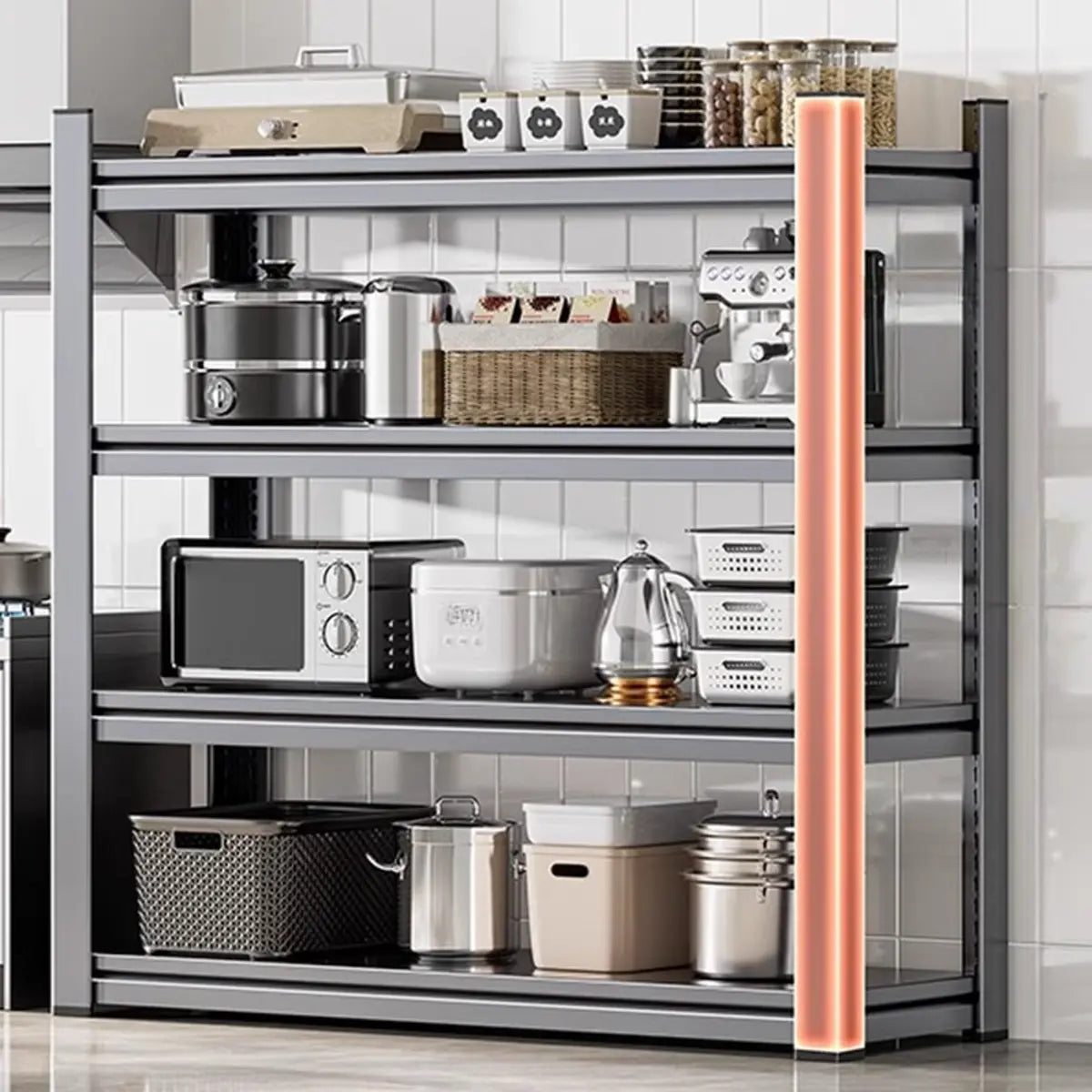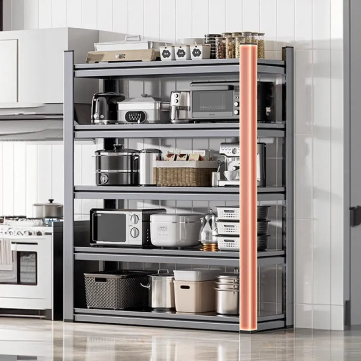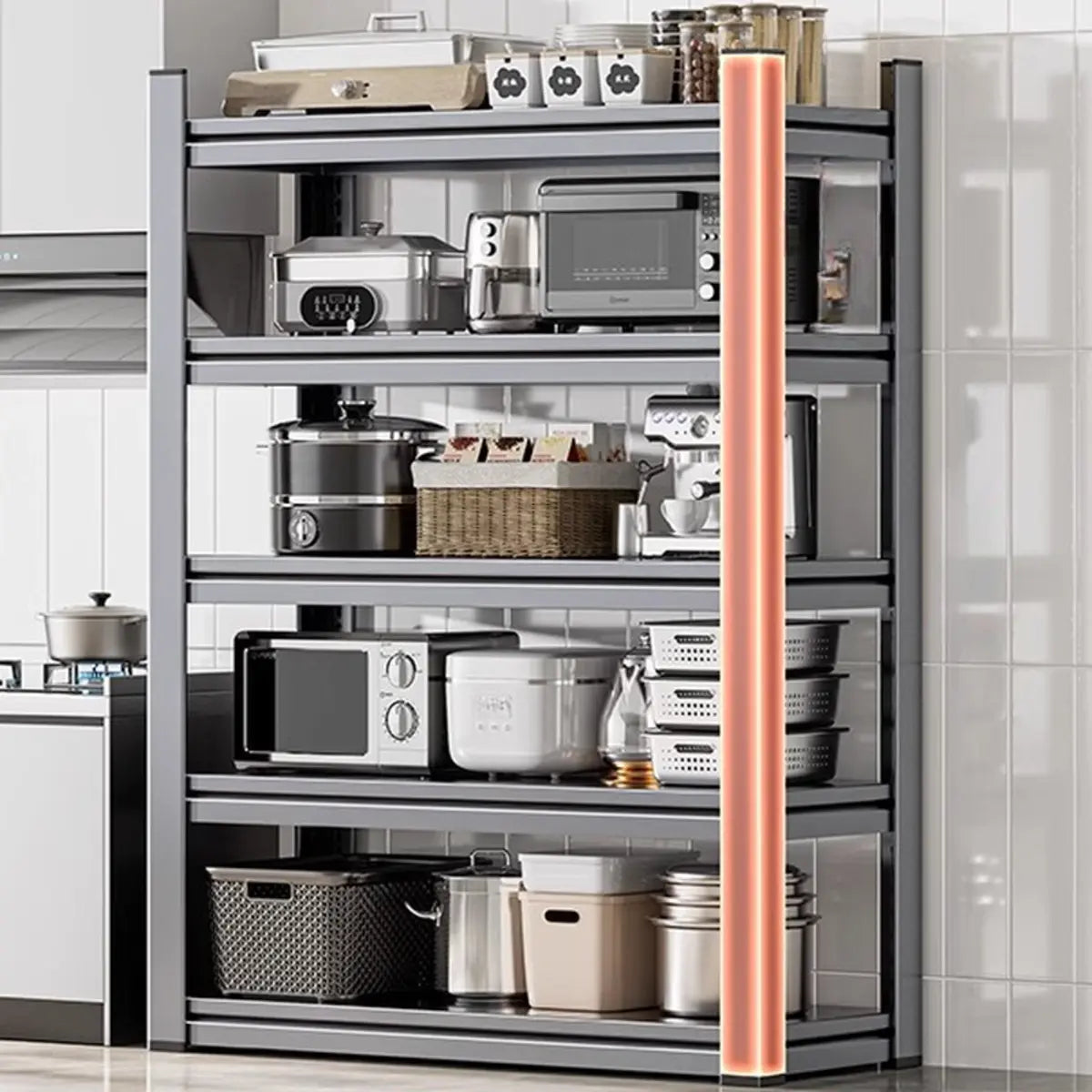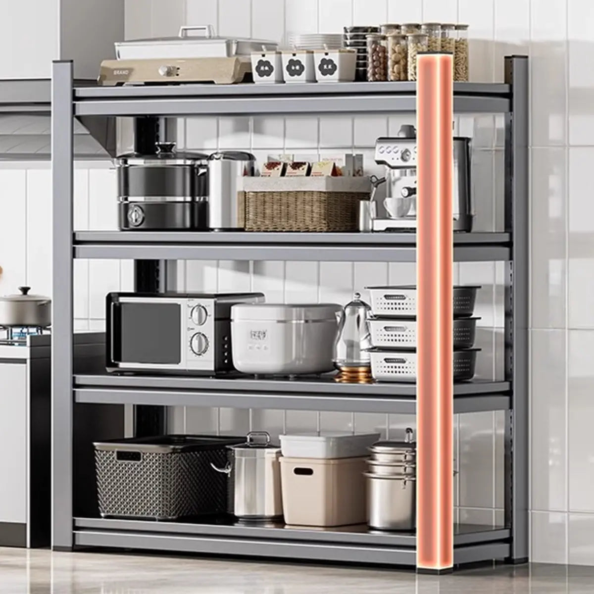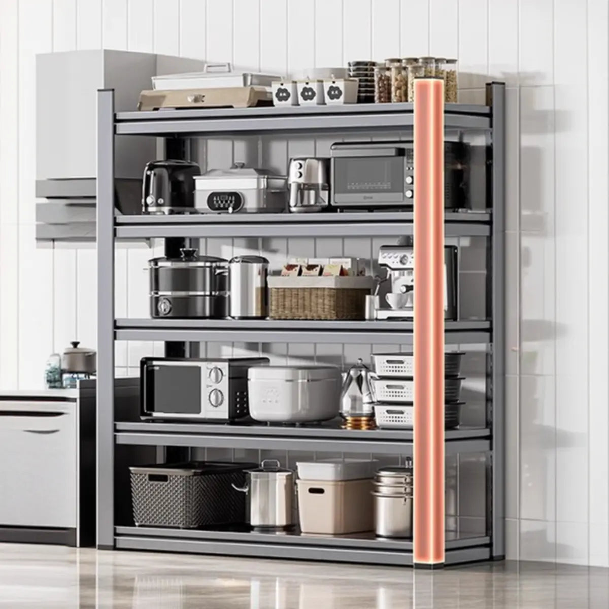 As the perfect companion for your kitchen and home, this modern and practical baker's rack presents functionality and style. Crafted from solid steel, it features better durability and weight-bearing capacity. Its spacious design presents enough storage space to keep your kitchen tools, recipes, or other items systematically. The simple gray color is appropriate for any home interior and is a practical and beautiful choice.