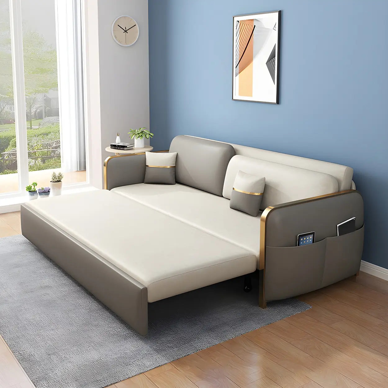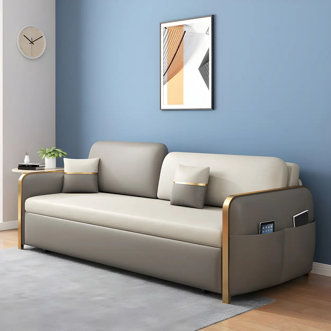 This modern square armrest sofa bed uses premium faux leather and combined with stylish grey tones, adds a touch of elegance and comfort to your living room. It is not only a sofa but also a sofa bed with a storage function, suitable for a variety of small apartments and multi-functional living spaces.