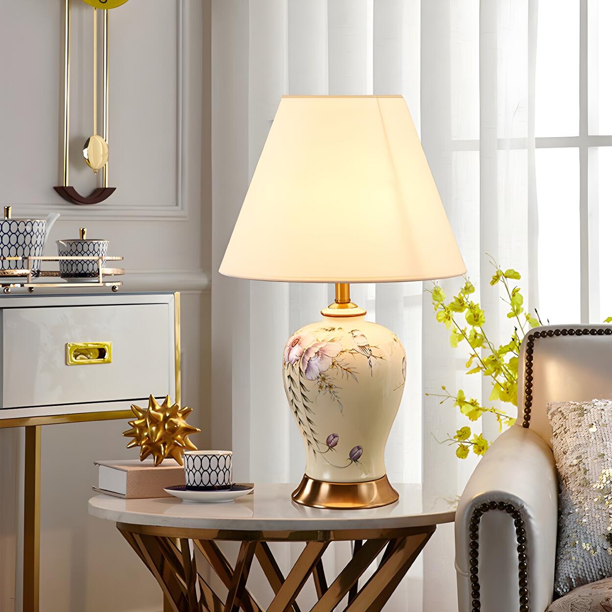 Hand-Painted Ceramic Base White Lampshade Table Lamp
