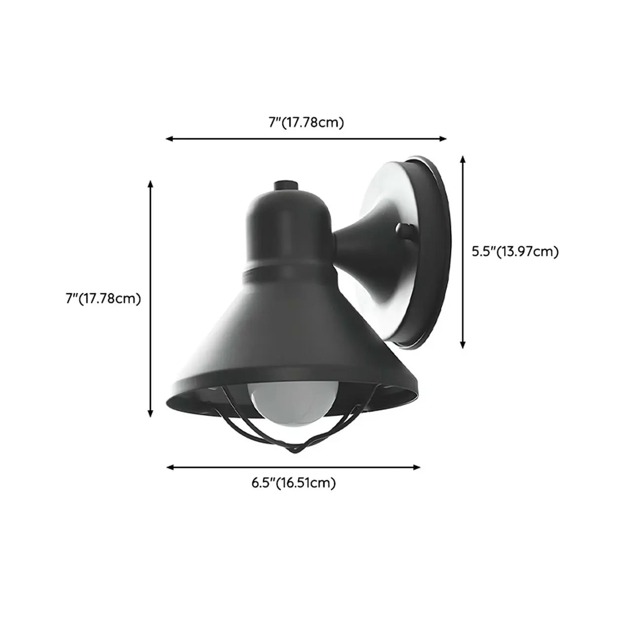 With a conical design and black metal material, this modern industrial-style lamp is perfect for outdoor installation to improve your living space. Convenient for lighting up gardens, patios and porches, this wall lamp will heighten a touch of elegance to your outdoor area.