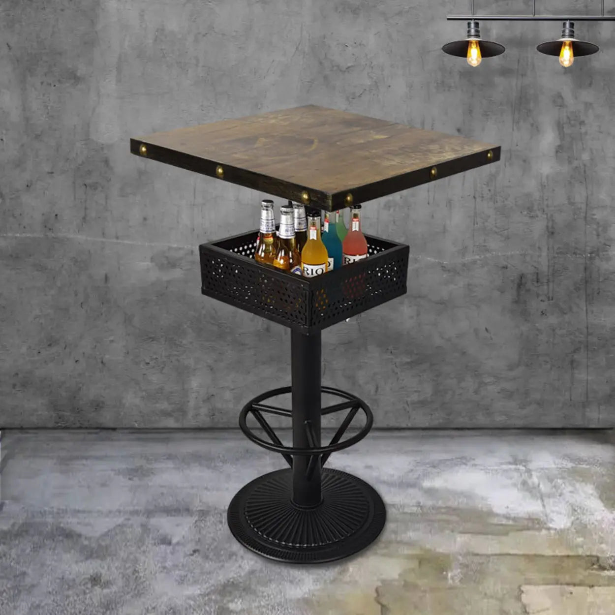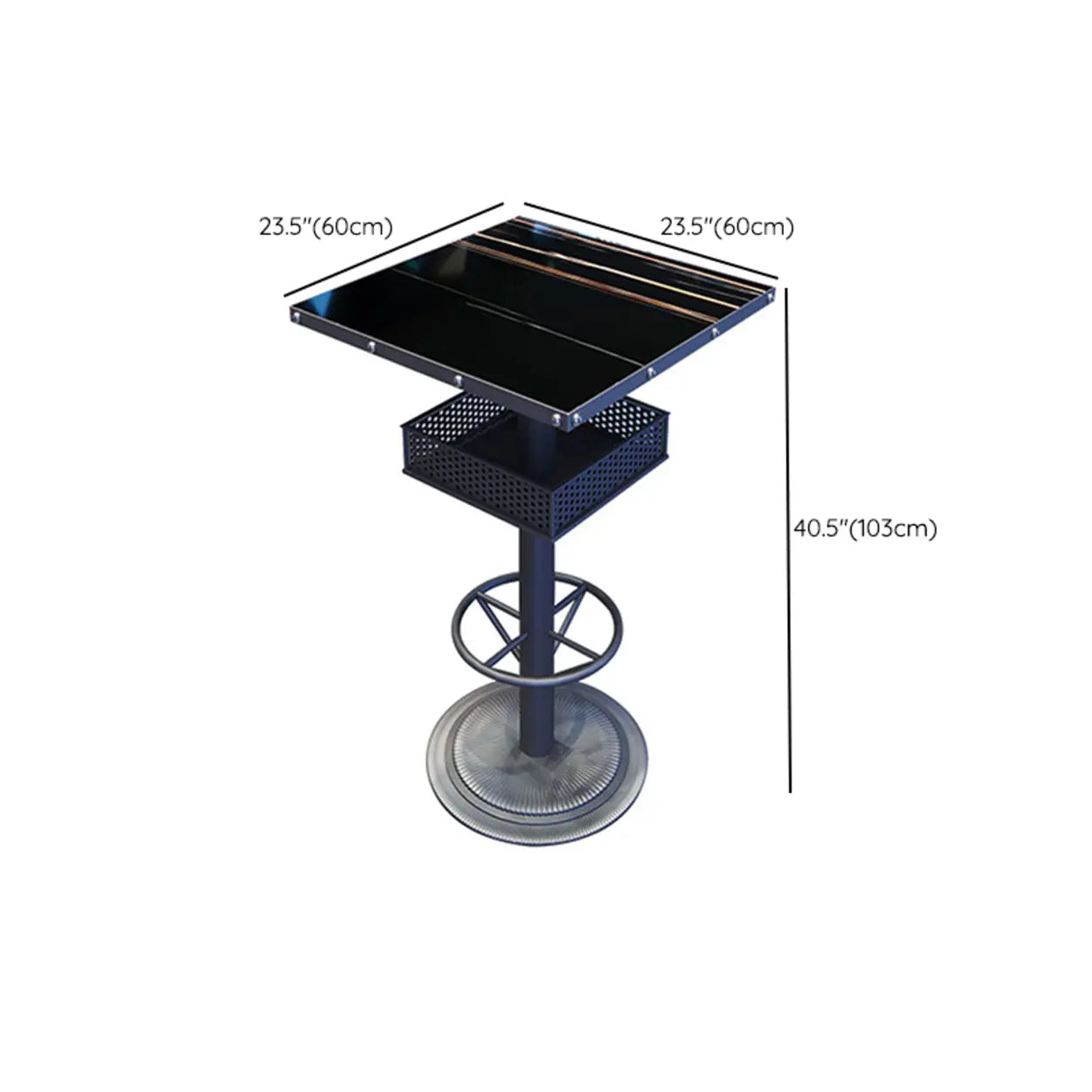 Industrial Black Small Round Bar Table with Storage Shelf - Black / Square / Table Only is backordered and will ship as soon as it is back in stock.