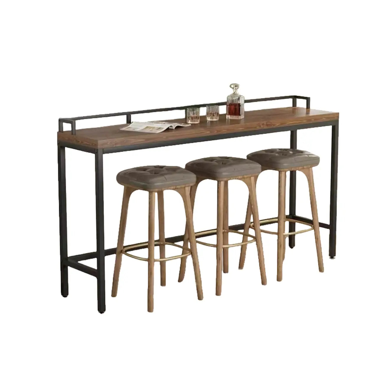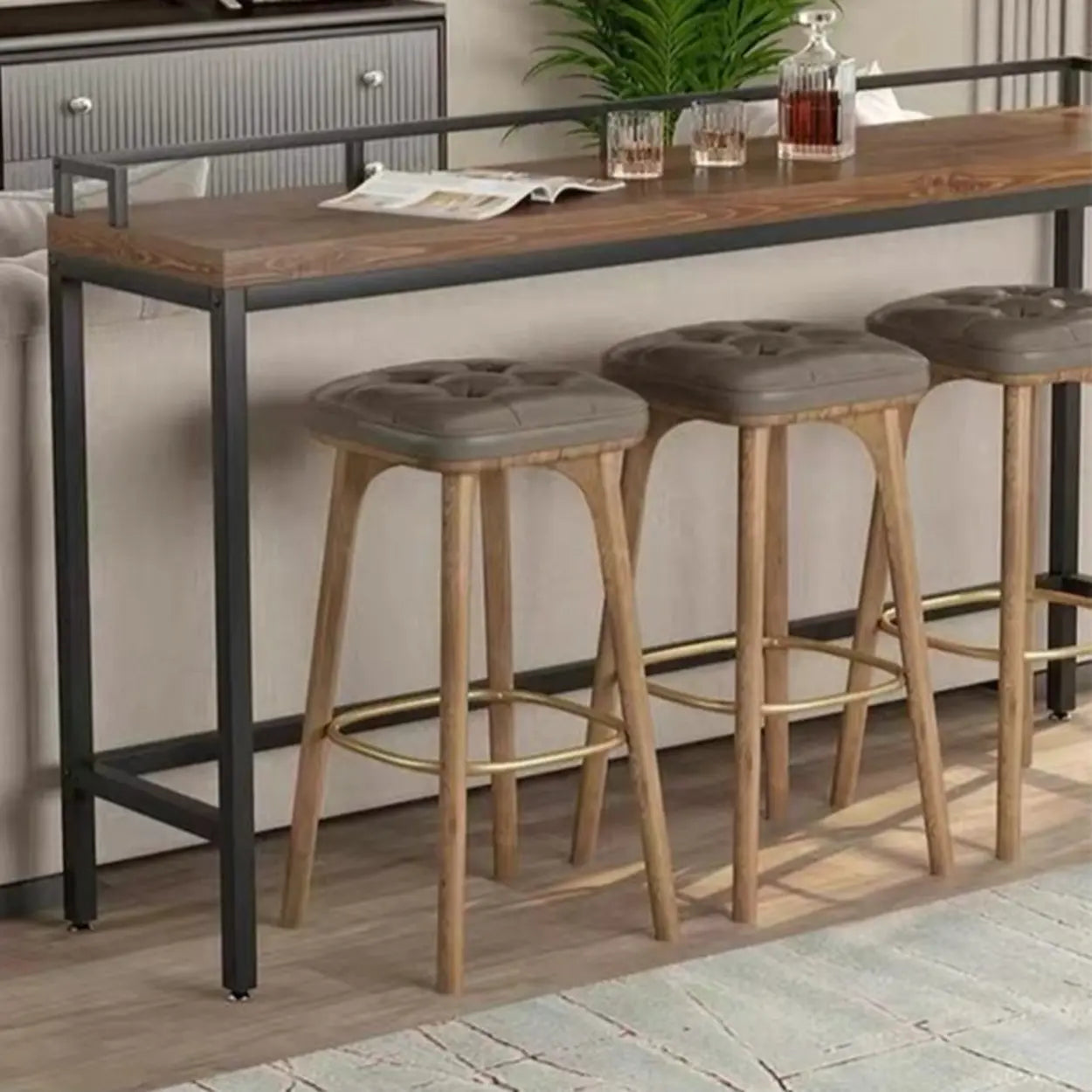 Industrial Brown Rectangular Metal Wood Bar Table With Footrest