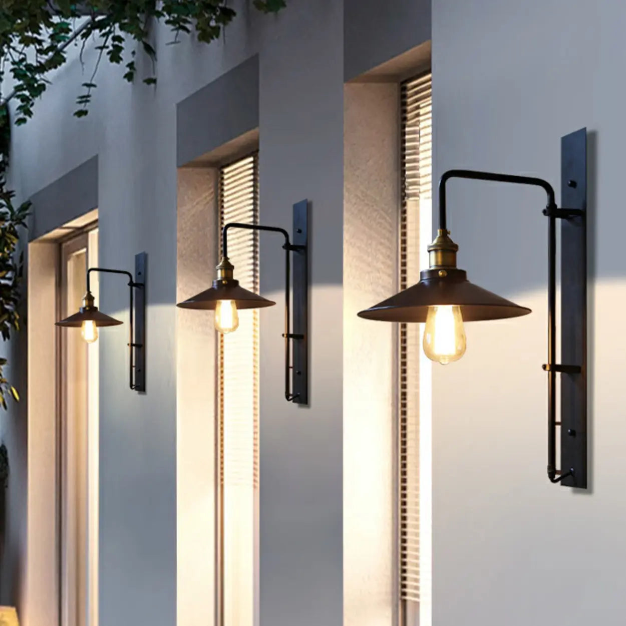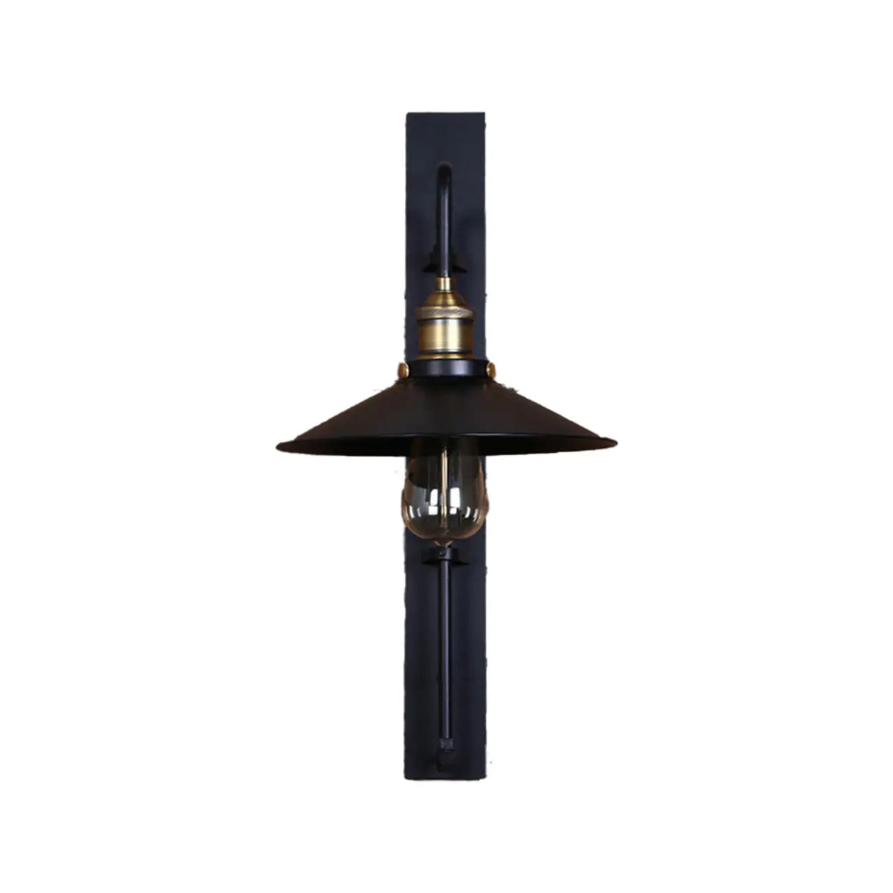 This industrial-style wall lamp, with a classic conical design and black iron, shows a strong sense of the times and metallic texture, which is the finishing touch in modern decoration. Perfect for installed in the garden, terrace or porch, it can add a touch of classic and elegant atmosphere to your outdoor space. This lamp is sturdy and durable, especially suitable for various weather conditions, ensuring its safety and durability. With its miniature design, it can provide sufficient lighting in a low-key and effective manner, perfect for a variety of outdoor occasions.