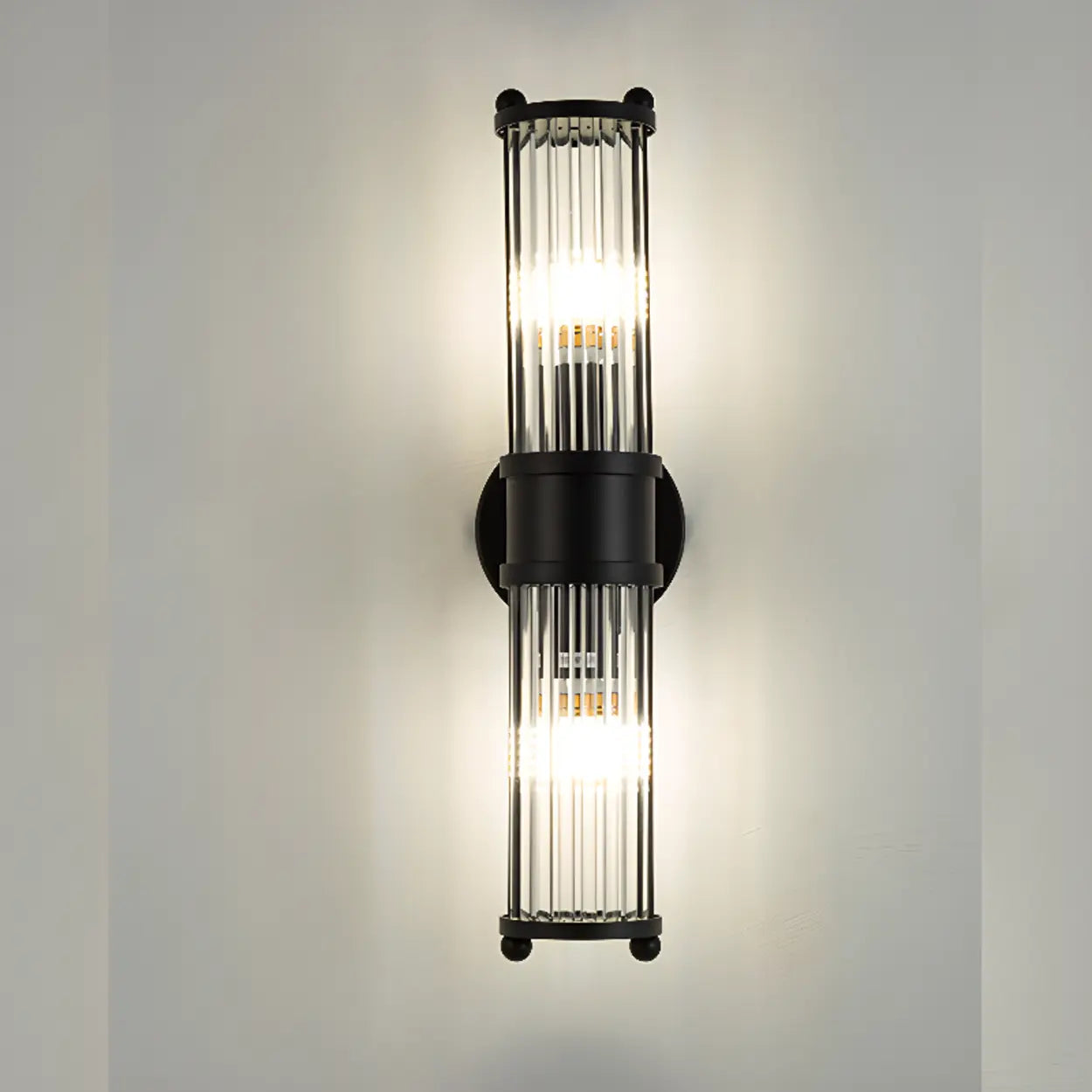 Industrial Cylindrical Crystal Glass Wall Sconce - Black / 2-Light is backordered and will ship as soon as it is back in stock.