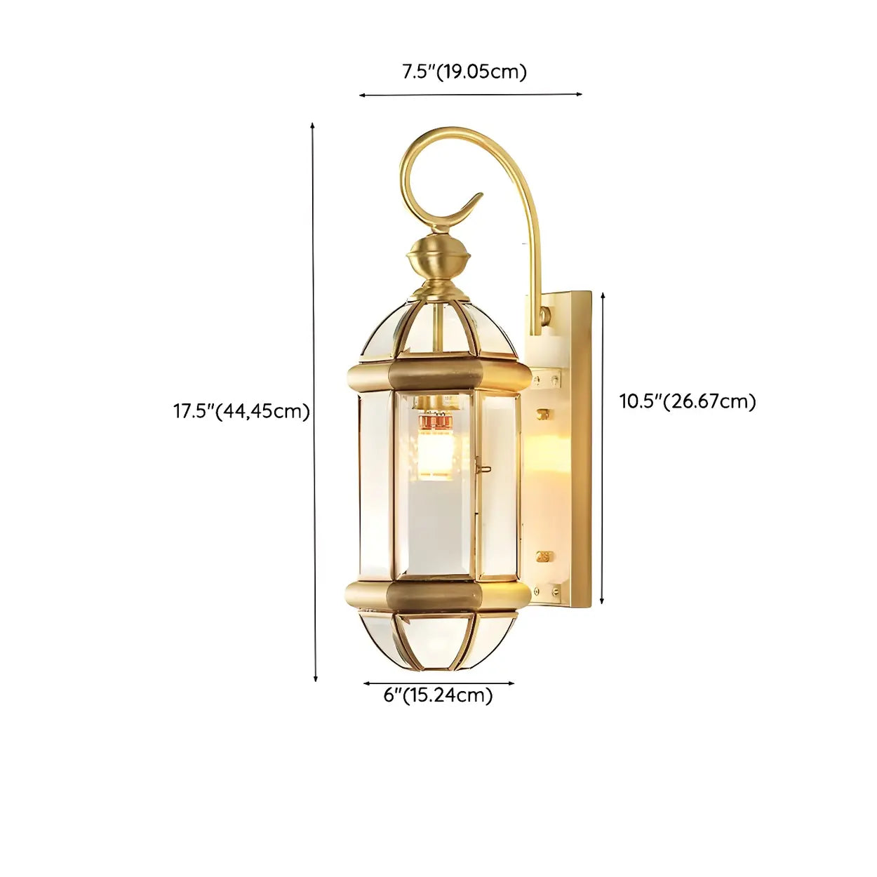 Industrial Exterial Gold Glass Lantern Wall Sconce