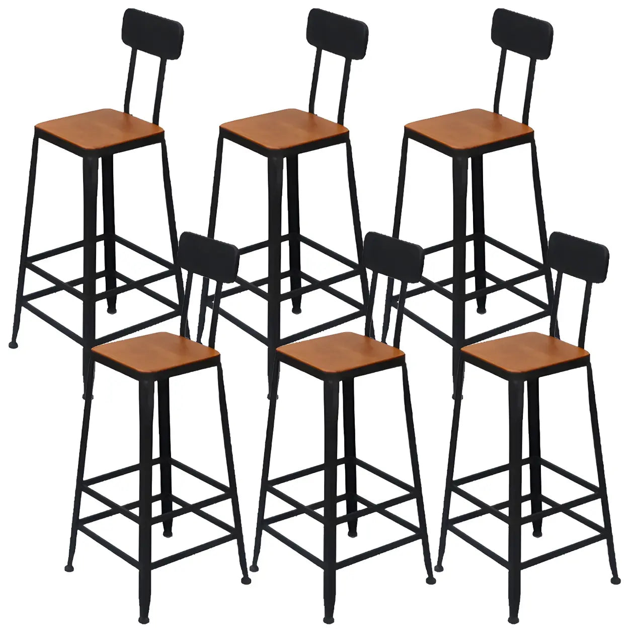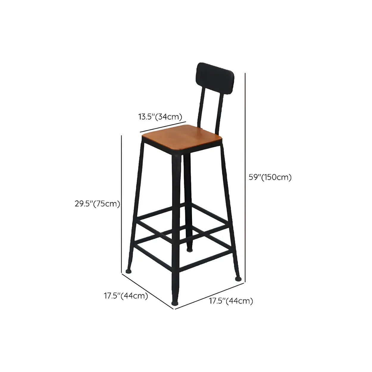 Industrial Metal Frame Wood Square Bar Stool with Backrest