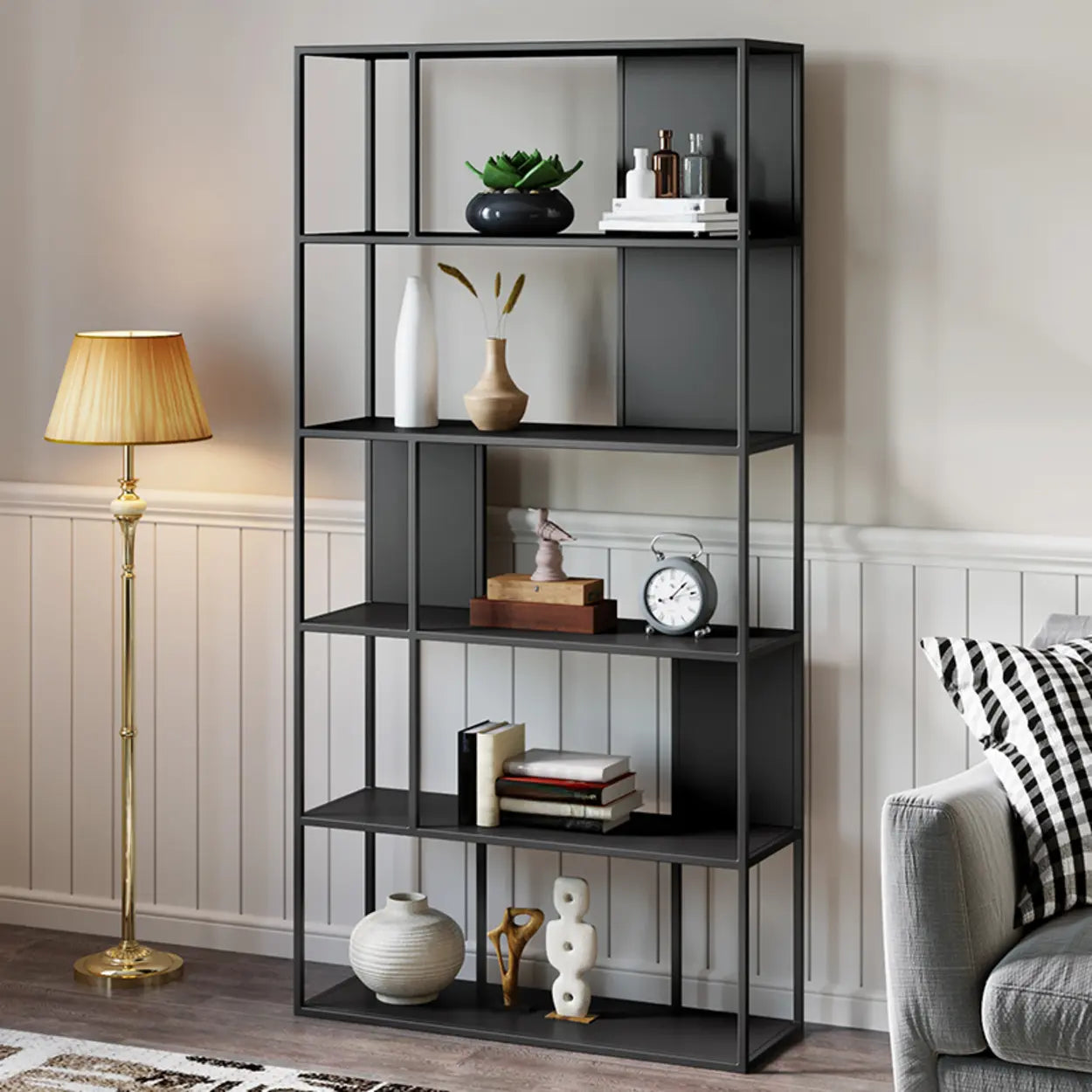 Industrial Metal Open Black Etagere Display Bookcases