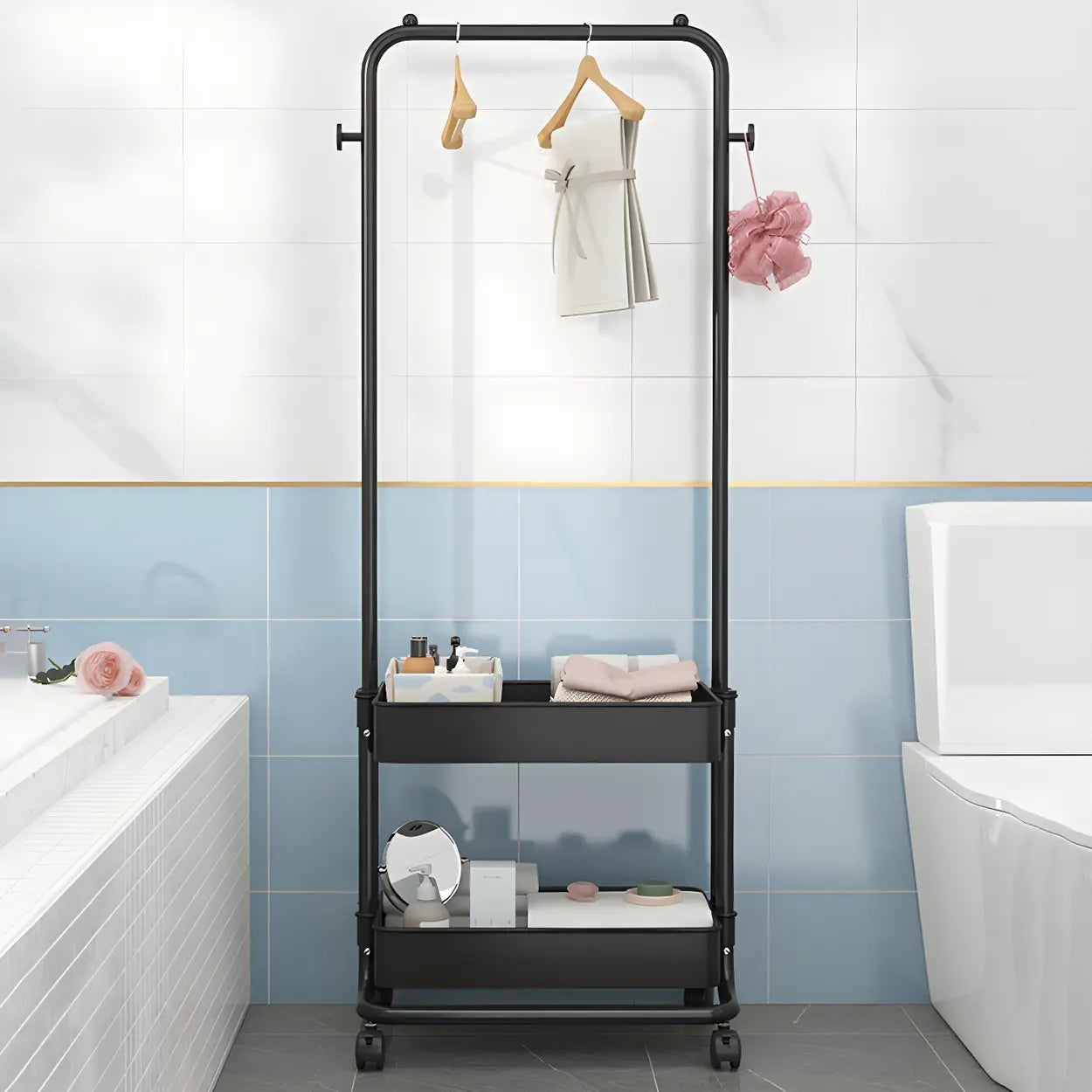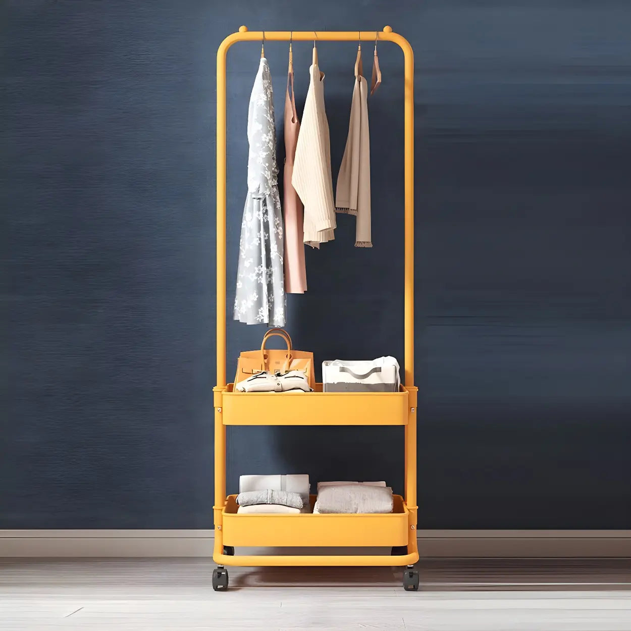 Industrial Narrow Metal Rolling Coat Rack with Shelves