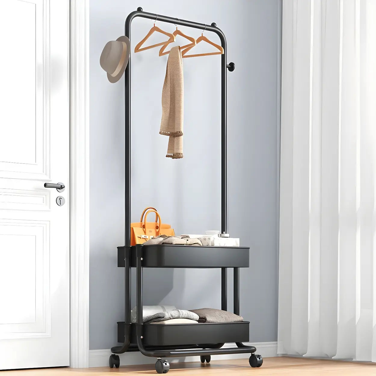 Besides holding clothes, it also features multi-tier shelves at the bottom—perfect for stashing shoes, bags, and other essentials.