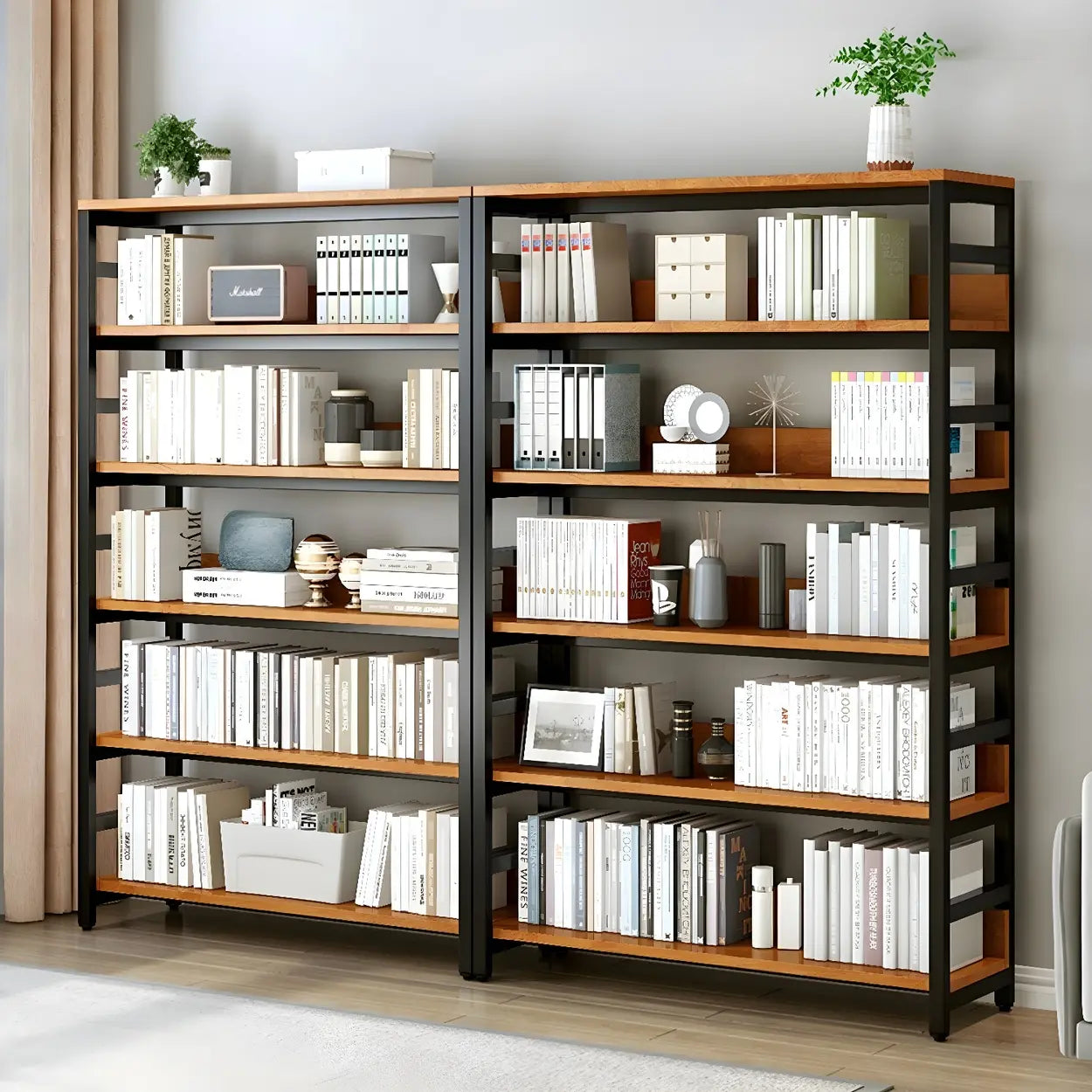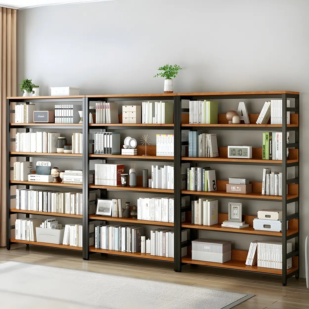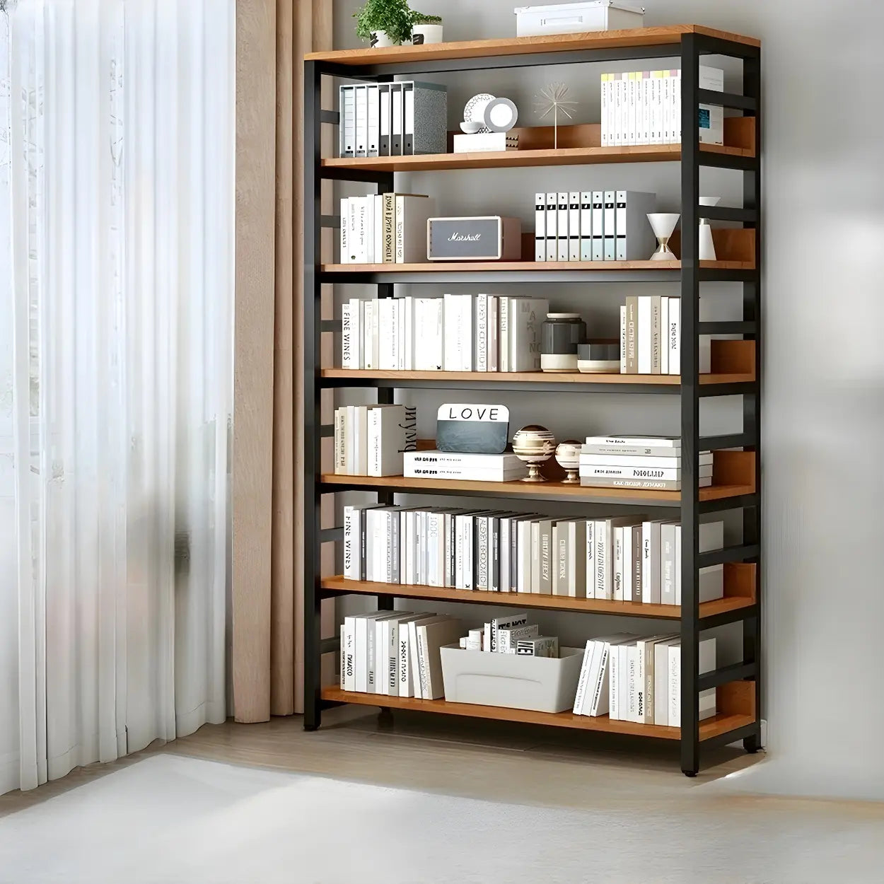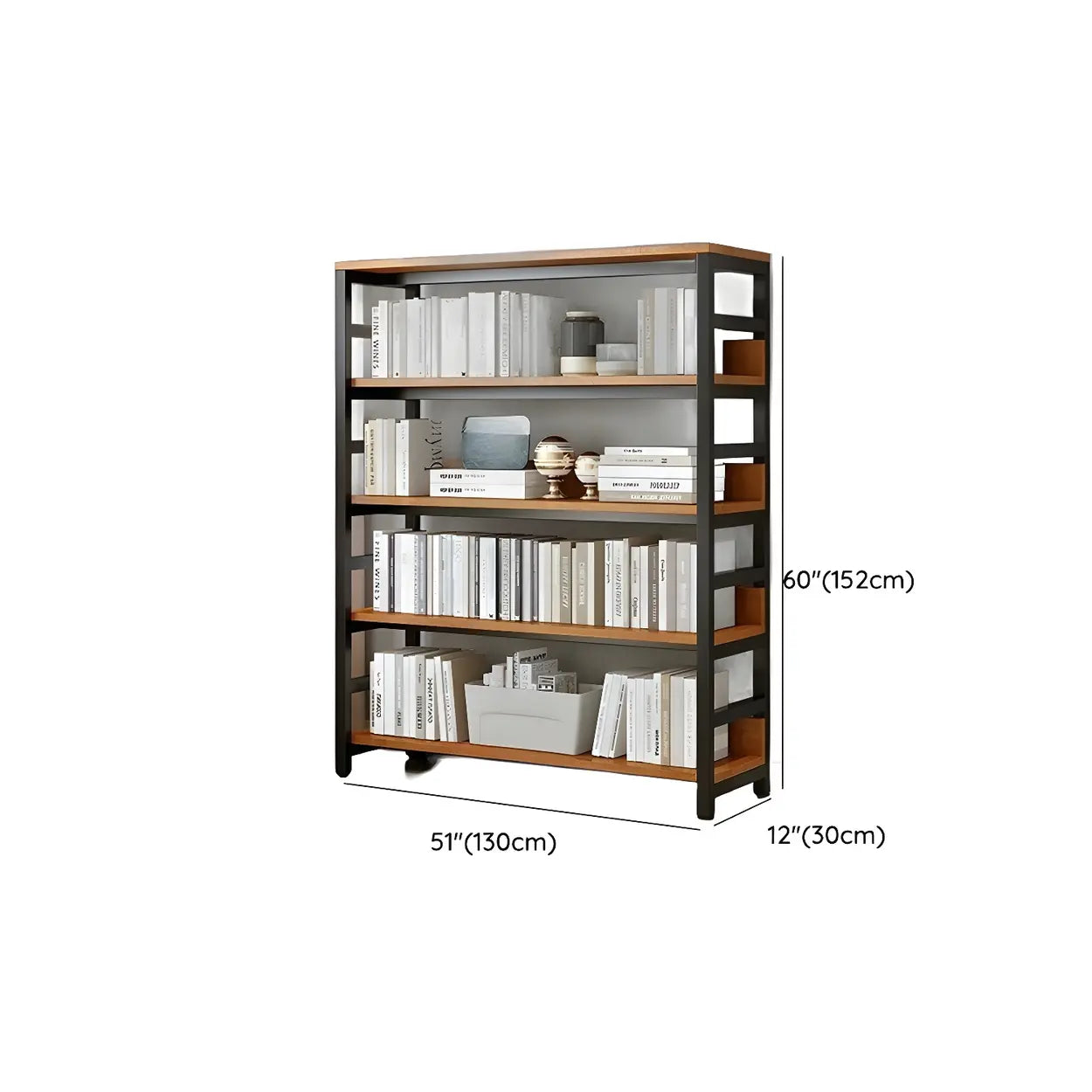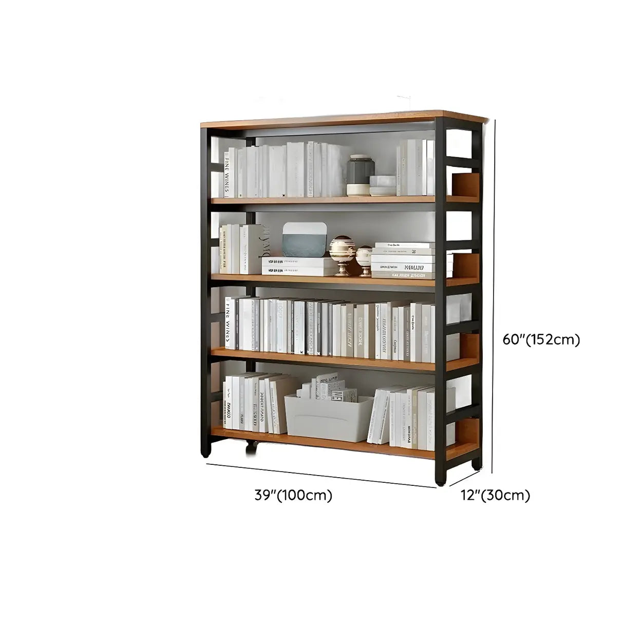 This modern wood and metal industrial style bookcase is ideal for any home or office environment. It brings visual enjoyment and is a practical storage solution. Available in a variety of sizes, it can meet different space needs.
