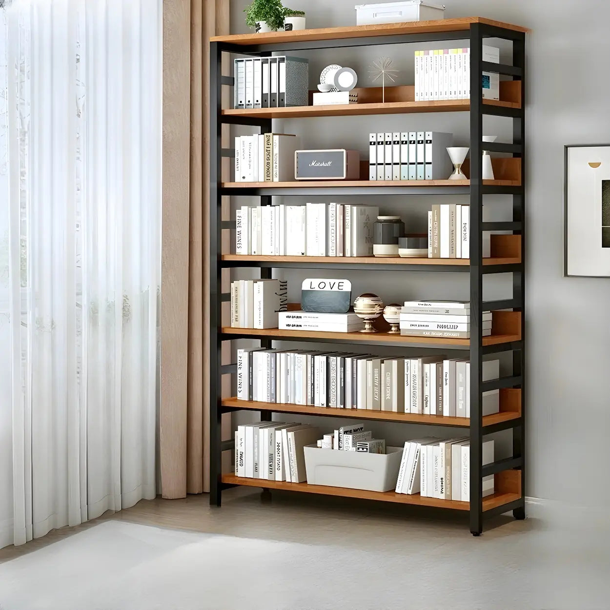 Open design makes it easy to organize and display books and decorations.