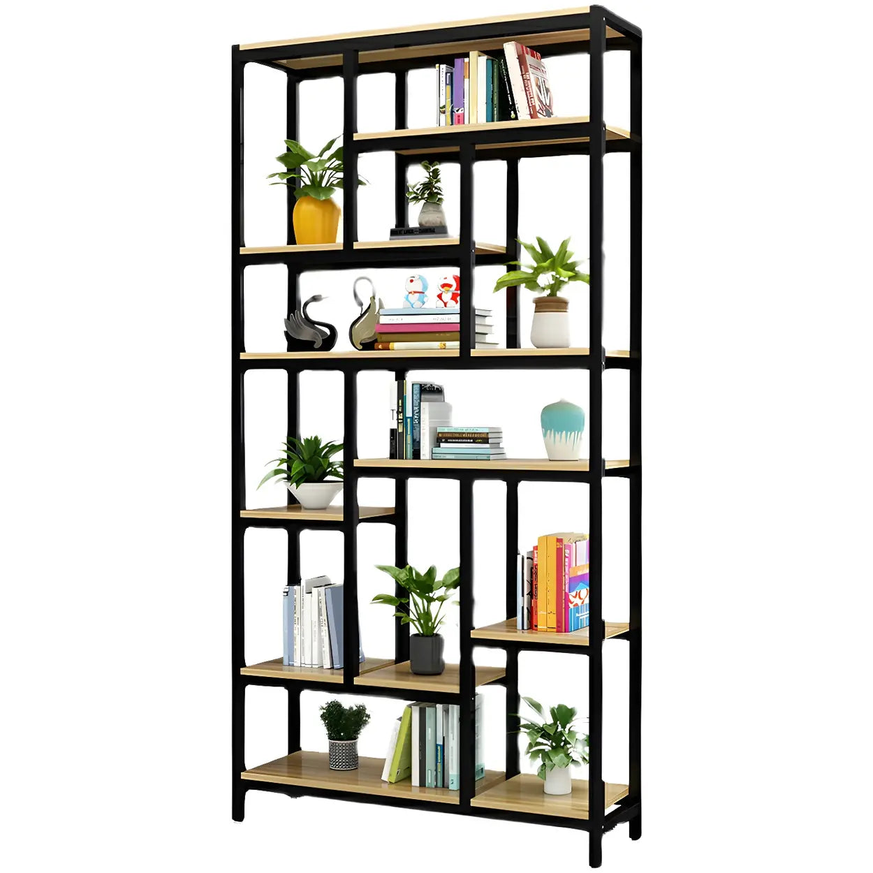 This industrial-style open bookcase can accommodate up to 12 open shelves, giving your books or decorations plenty of storage space. Its simple and elegant design is appropriate not only for the home, but also for an office or studio.