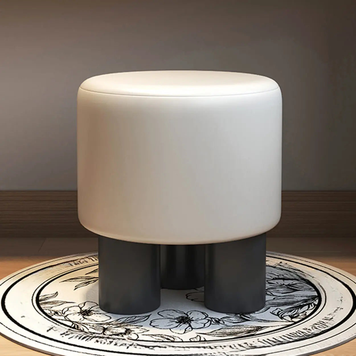Khaki Round Fabric Upholstered Vanity Stool with Legs