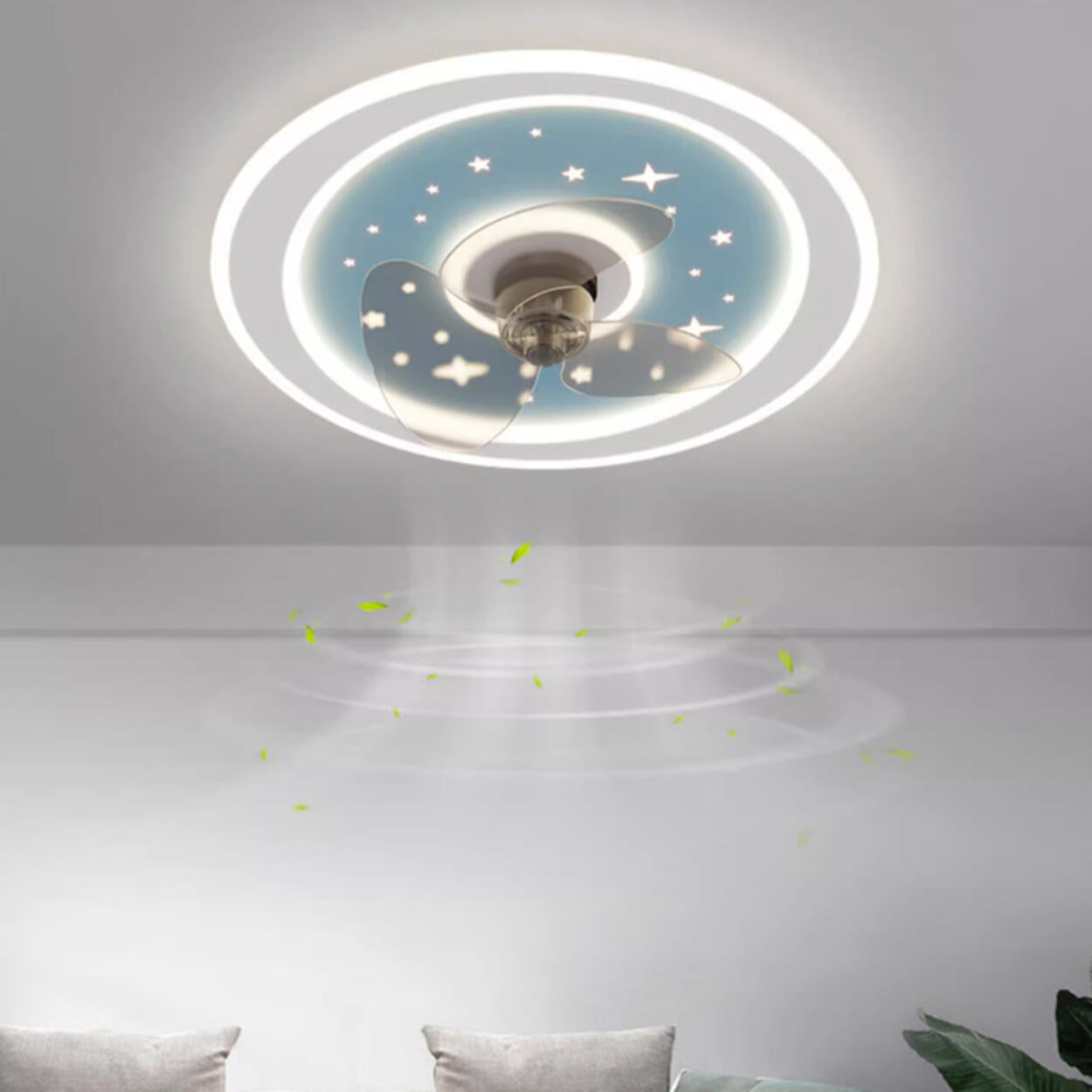 - This star-themed round ceiling fan light uses embedded installation, which is ideal for low ceilings, saving space, and is beautiful.