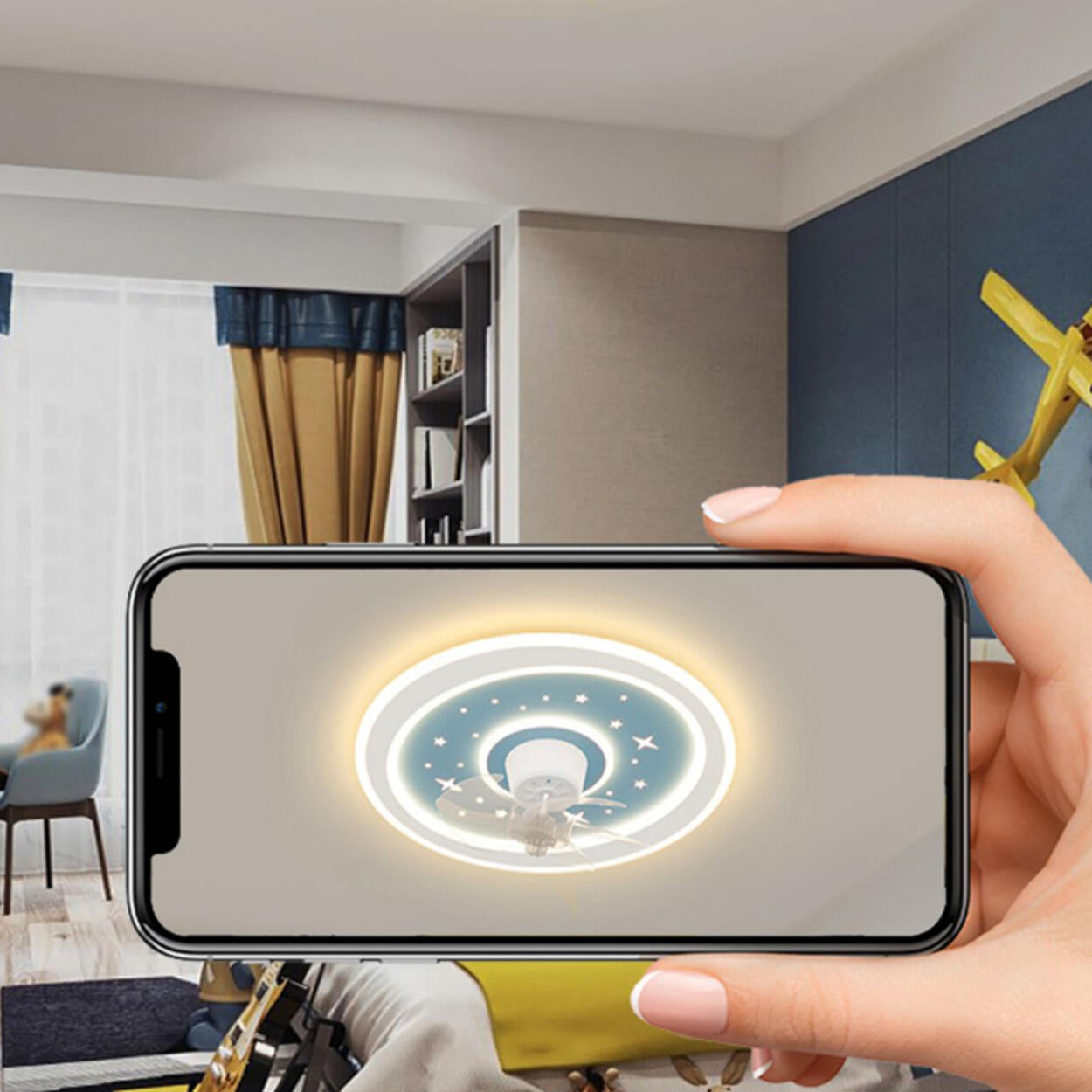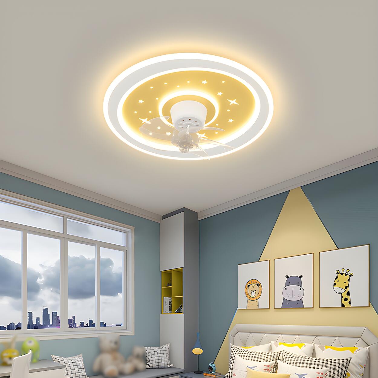 Kids Room Sleek Star-Themed Round Ceiling Fan Light