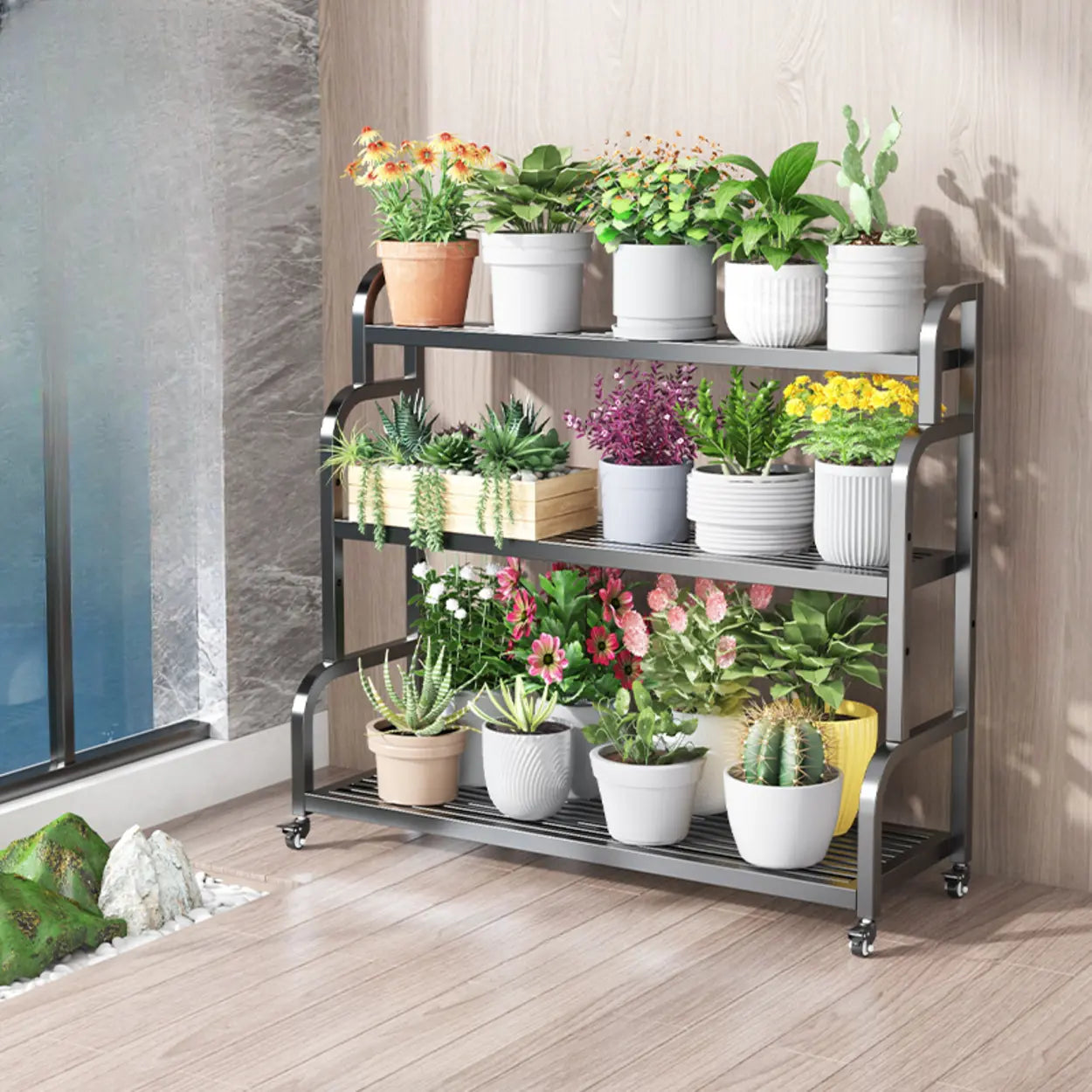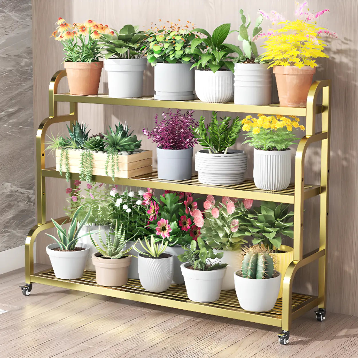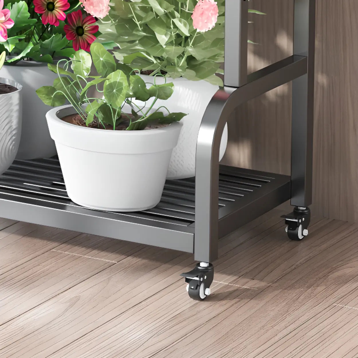This modern rectangular metal plant stand is stylish and practical. The multi-layer design makes full use of the vertical space and can be used to display a variety of plants. Suitable for installation in a variety of scenes such as indoors or on balconies. Its rolling base design makes it easy to move, which can reflect extraordinary practicality whether in home decoration or indoor gardening.