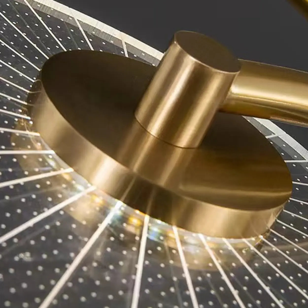 The golden metal light body is matched with the polymer lampshade, showing the luxurious texture.