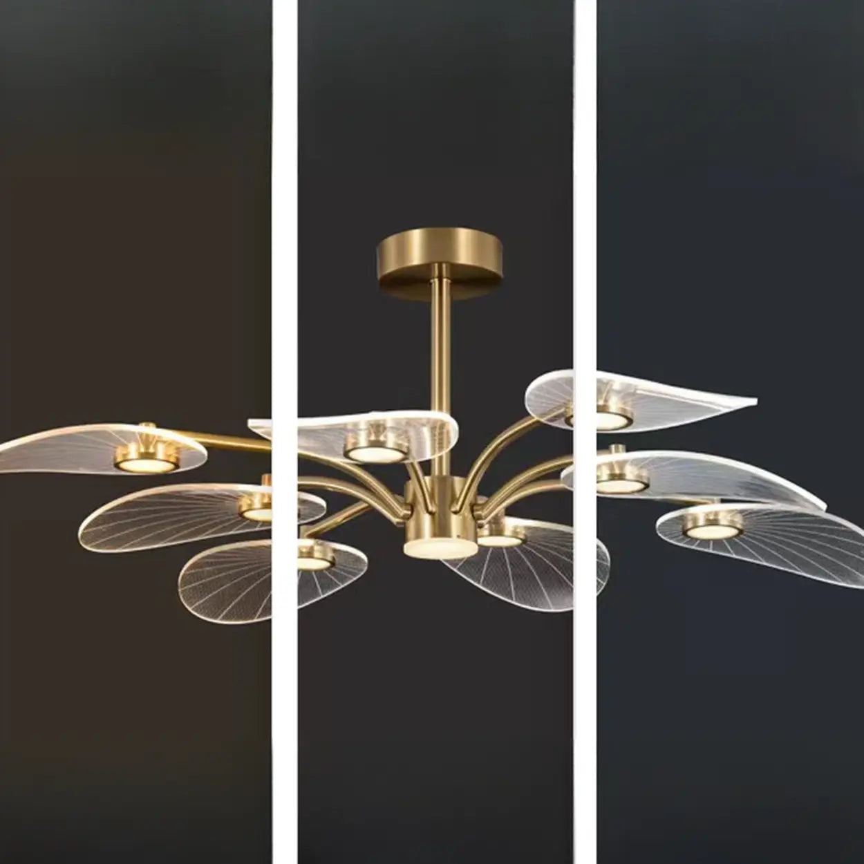 Large Gold Leaf LED Semi-Flush Mount Light Bedroom