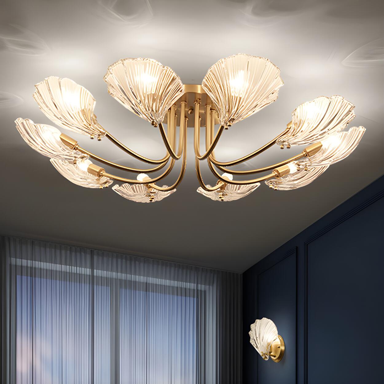 Large Gold Scallop-Shaped Crystal Semi-Flush Mount Lamp