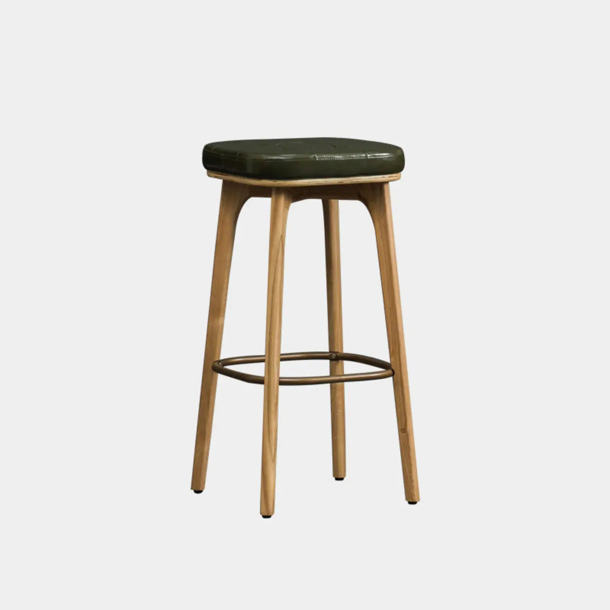 A versatile bar stool that combines a soft upholstered seat with solid wood legs and a supportive metal footrest. Designed for daily comfort, it fits into a variety of kitchen or bar settings and is easy to clean.