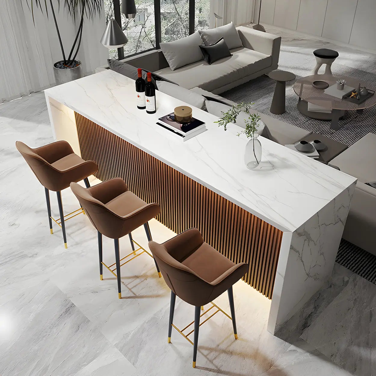 This modern minimalist white marble long bar counter perfectly blends functionality with style, bringing sophistication and luxury to your space. Its clean rectangular design enhances the elegance of any home or commercial setting. Whether in a home kitchen or a high-end restaurant, this bar counter effortlessly becomes the focal point of attention.